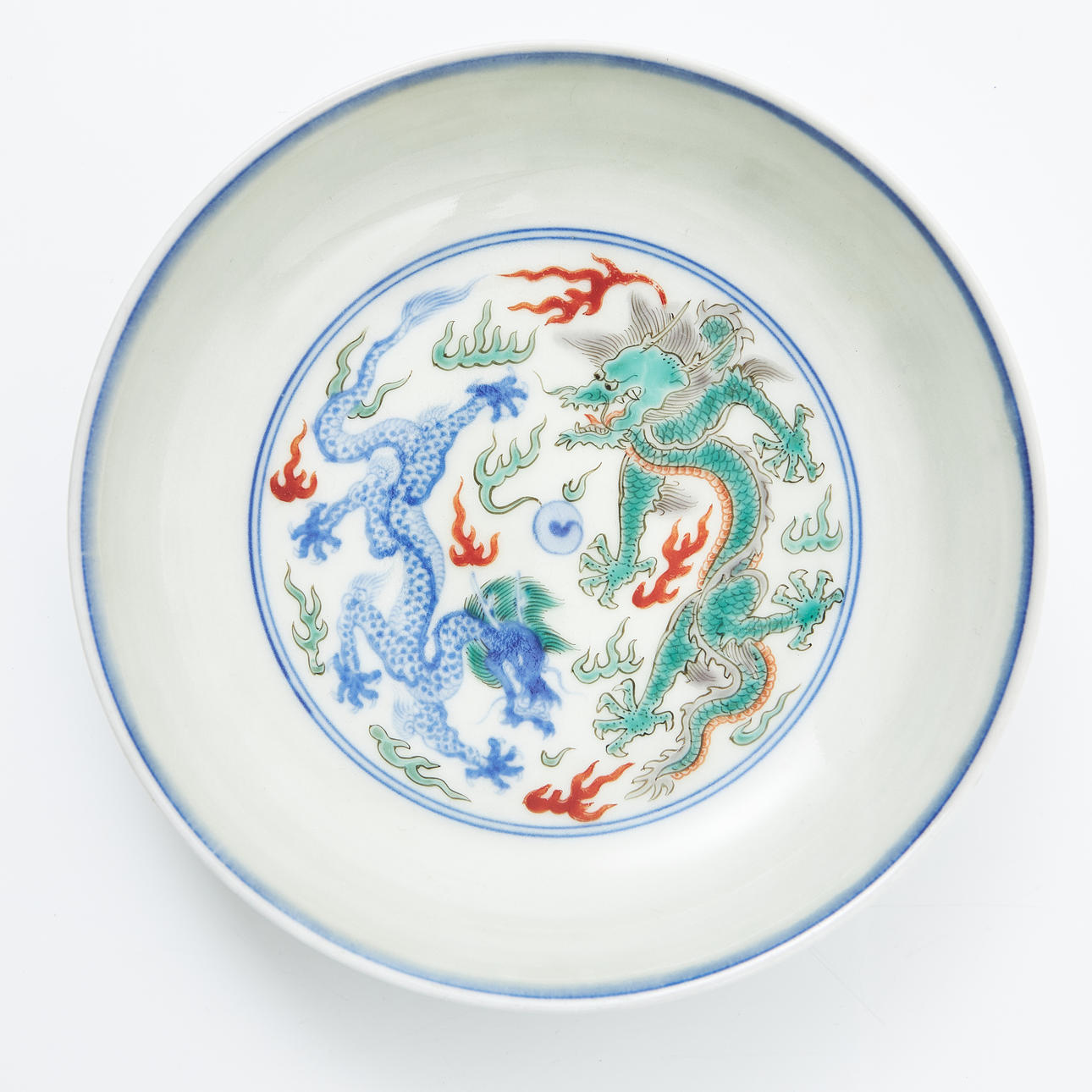 Decor of imperial dragons and cranes, with Kangxi's six character mark. Diameter approx. 14 cm. Condition No remarks. 207863