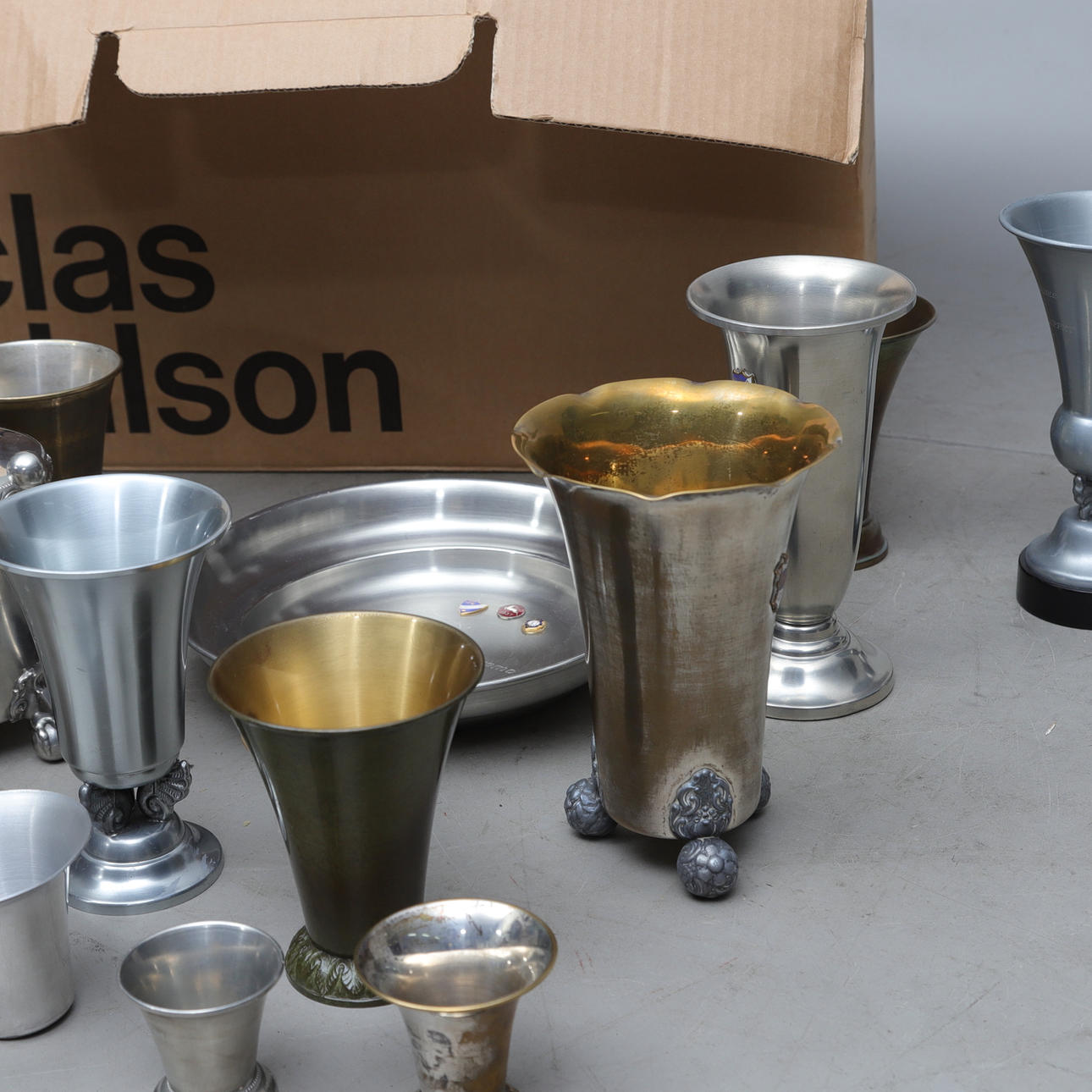 BATCH OF METAL OBJECTS, NICKEL SILVER/PEWTER, etc., 1900s.