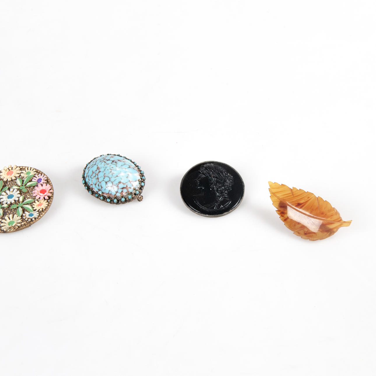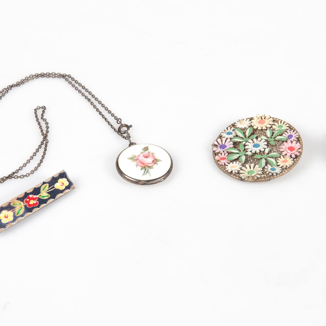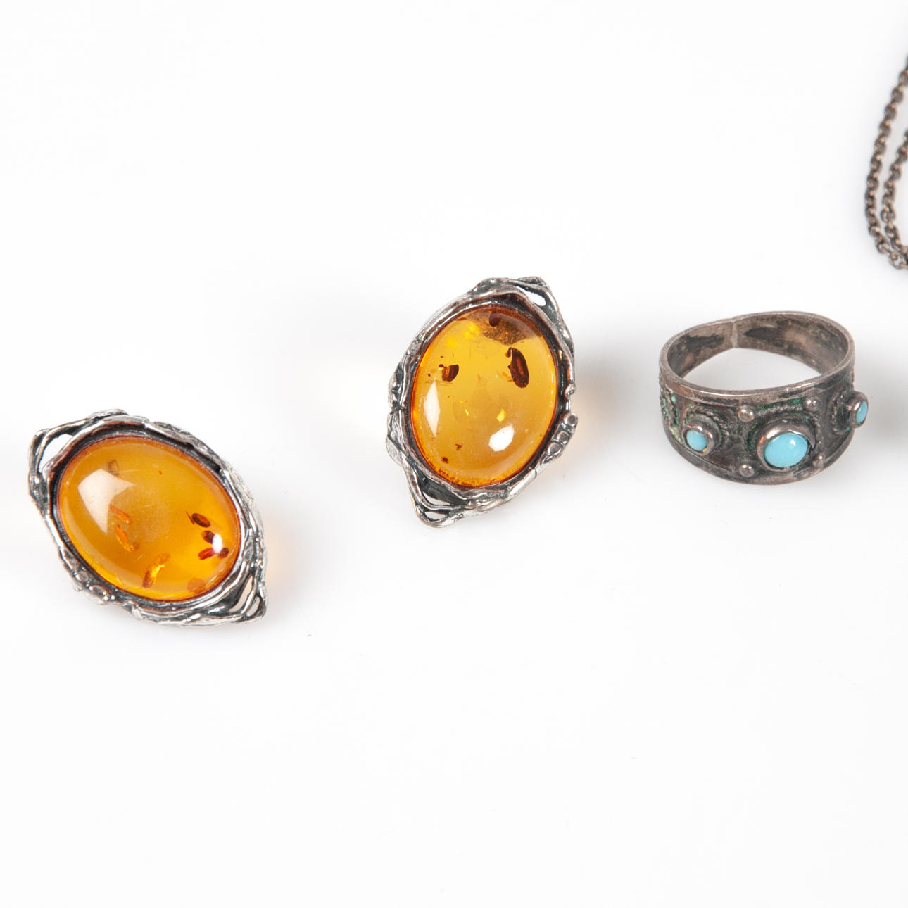 Brooches, earrings with amber, ring, pendant with hide in enamel. Condition Normal wear and tear. 50519
