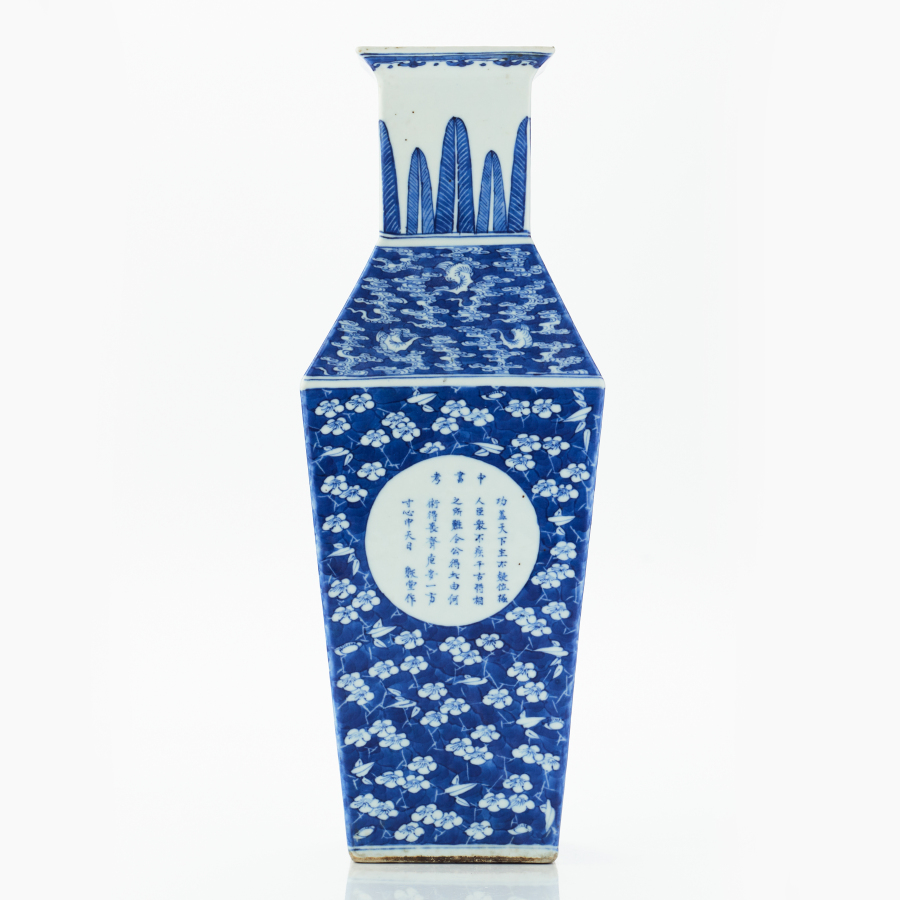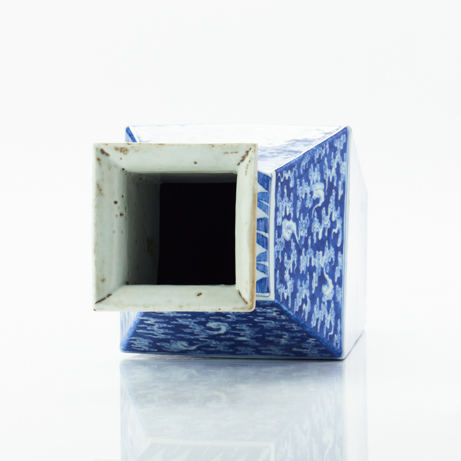 Underglaze blue decoration. Height 43 cm. status report Drilling, glaze wear, firing defects, cracks. 76108