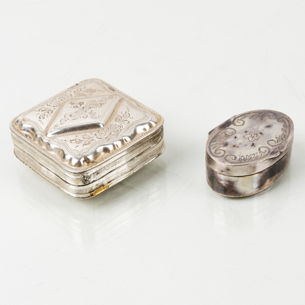 19th/20th century, total weight approx. 84 g Decoration of flowers, the boxes are approx. 4 x 3 and 5 x 5 cm Condition: Scratches, marks