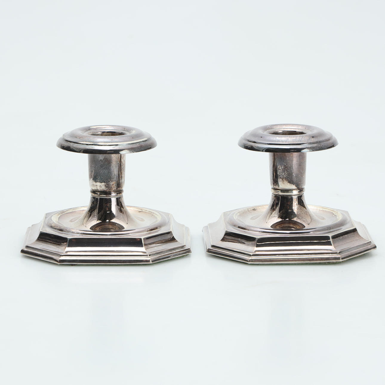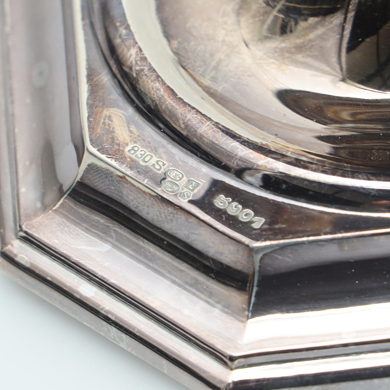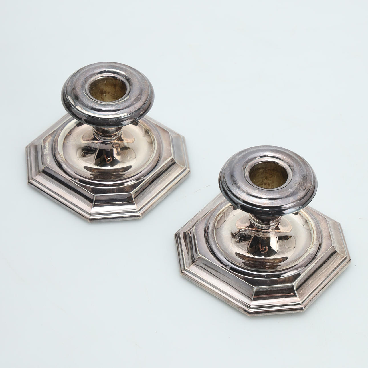 Swedish import stamps, filled feet, octagonal foot, height approx. 6 cm, weight with filling approx. 341 g. Condition Minor traces of use. 55299