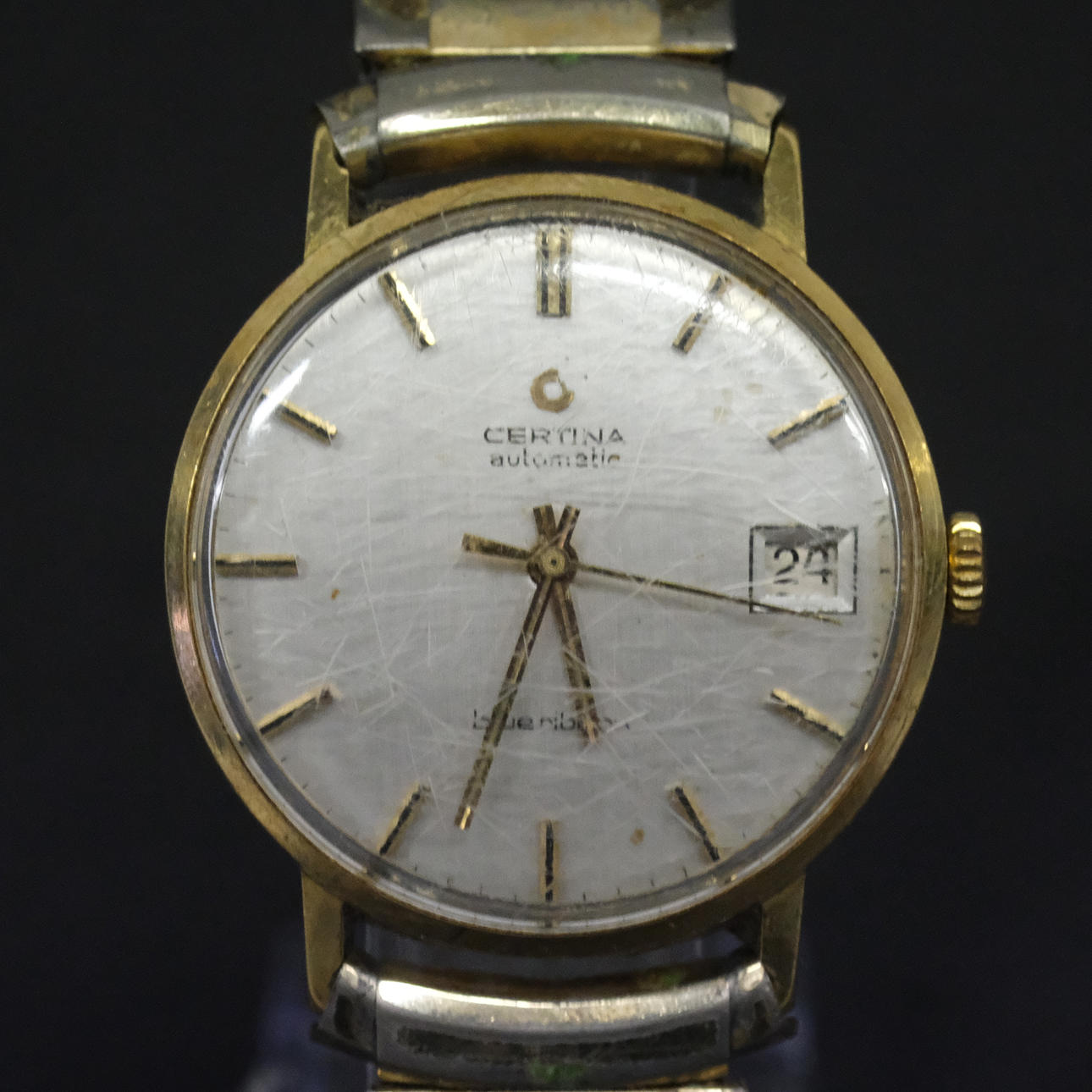 Diameter: about 36mm. Automatic clockwork with date display. Caliber: 25-651. Case number: 5810164179138. Condition Seemingly working. No functional warranty is provided. Watch glass and back case with scratches. Application and surface wear. 25884