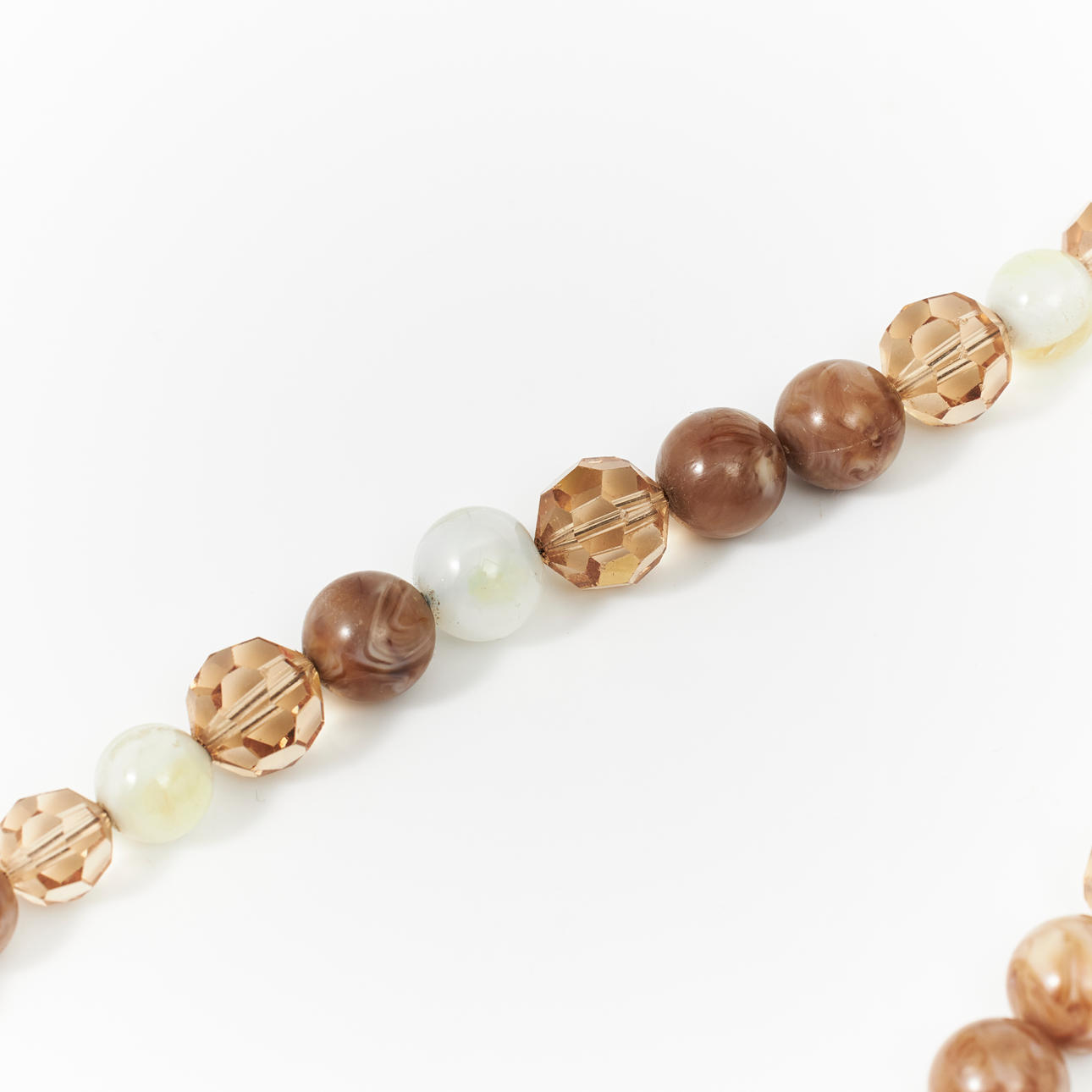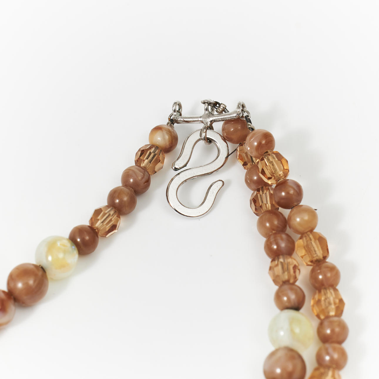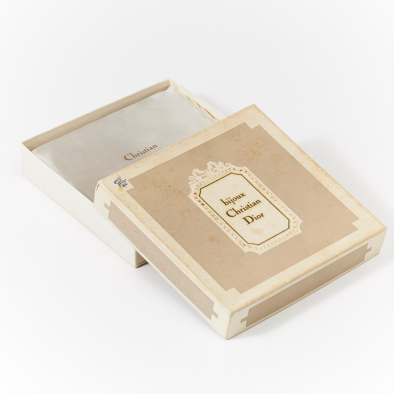 Different coloured cut beads, some faceted, badge marked Christian Dior 1959. Length approx. 38-41 cm, (extension part), case and original silk case included. Condition report Ash with stains and wear. 170292