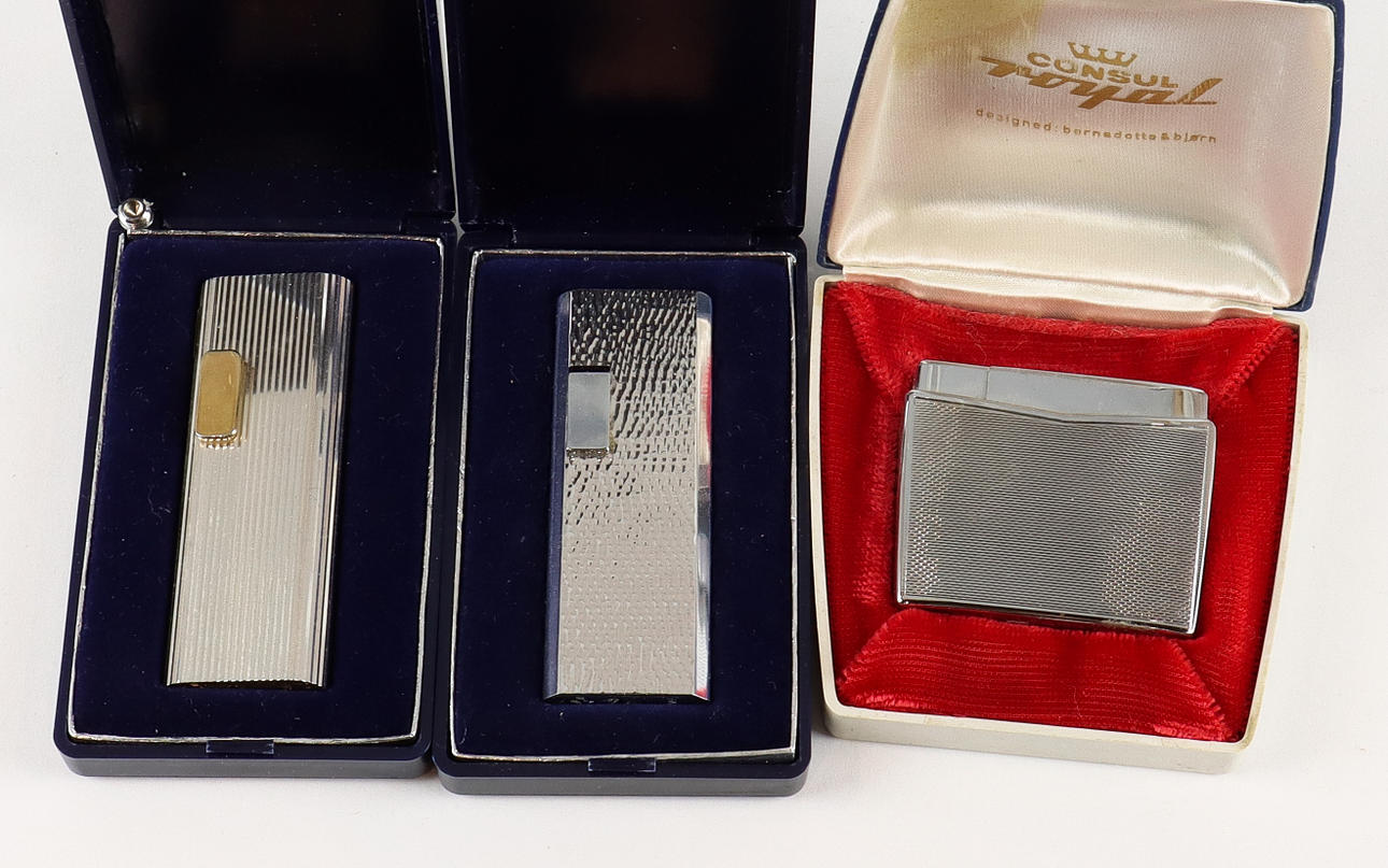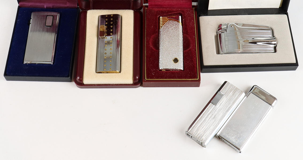 Including Ronson. 7 pieces in cases. Cases 11x8 cm and smaller. Condition Normal wear and tear. 36115