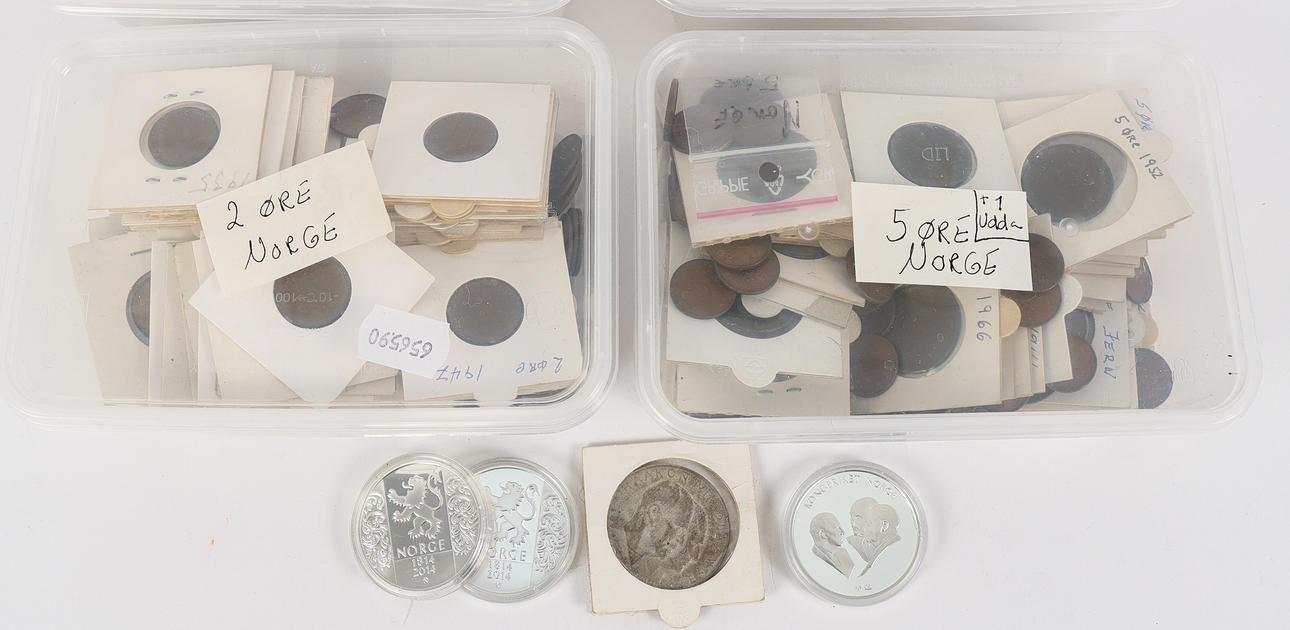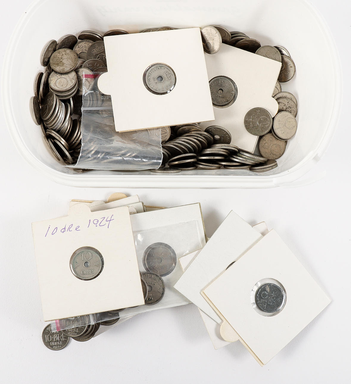 Silver, nickel and copper coins mainly from the 20th century. Many inserted into coin frames. Condition Variable wear. 61272