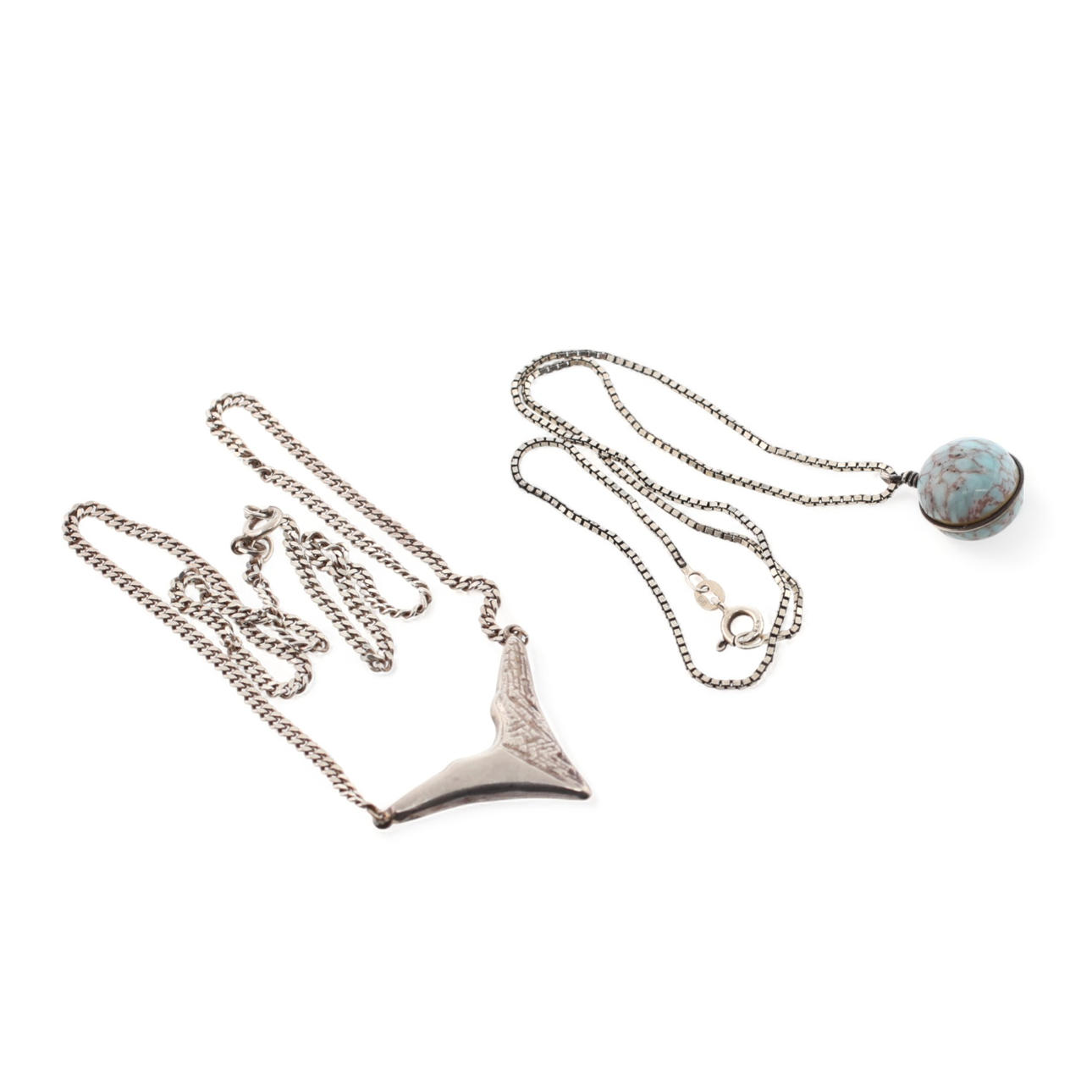A collier with stamped pendant, Finland, figure stamp and 925, no manufacturer or year. A semi-precious stone necklace, chain only stamped 925. Fitness report Wear and tear. 91782