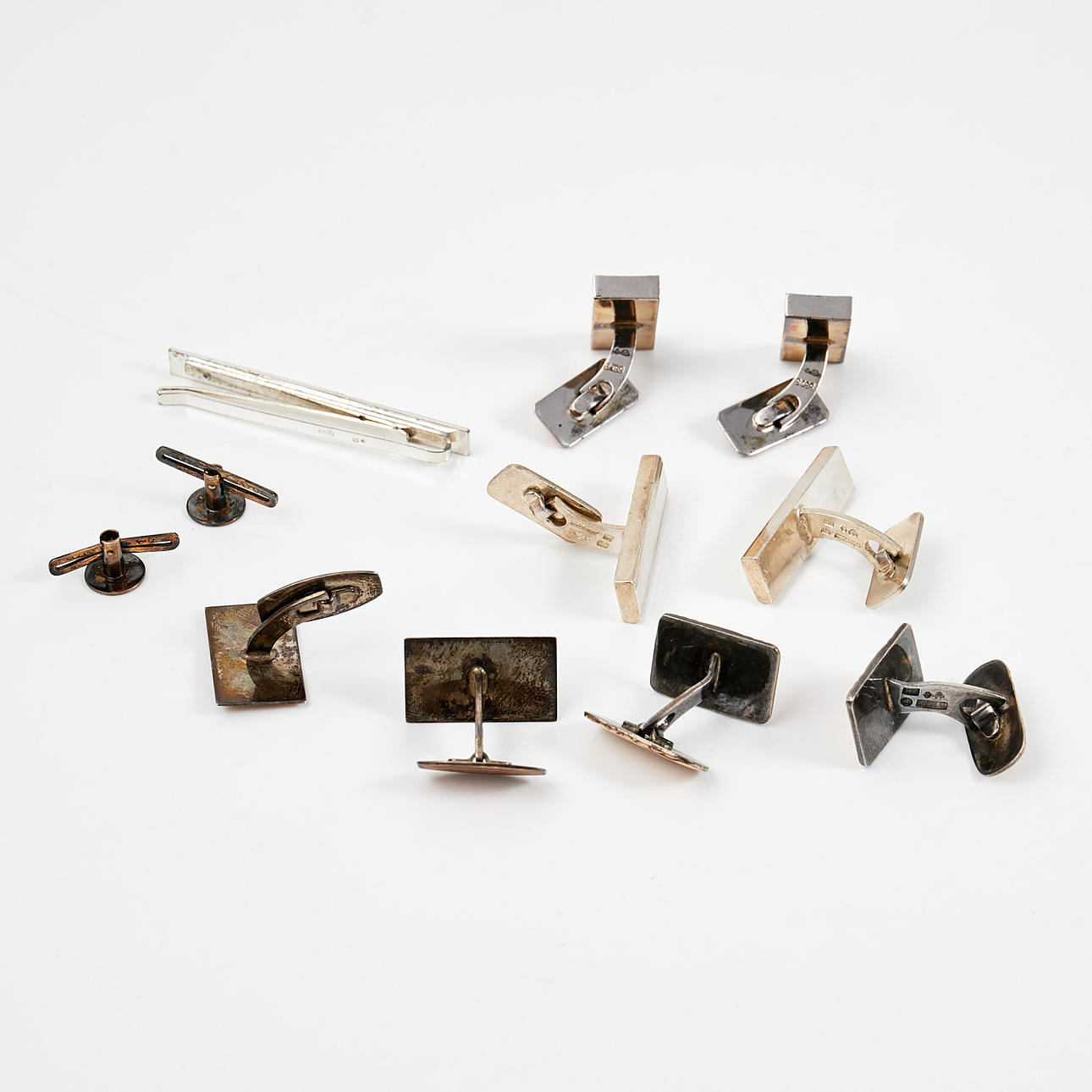CUFFLINKS & TIE PIN, 6 pairs + 1 pc, silver.