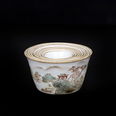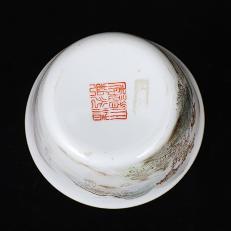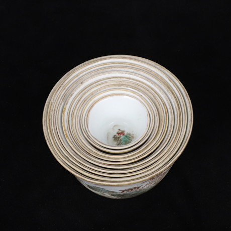 Cups with famille rose decoration. Height 2.6-6.3 cm. Fitness report Wear and tear. 153657