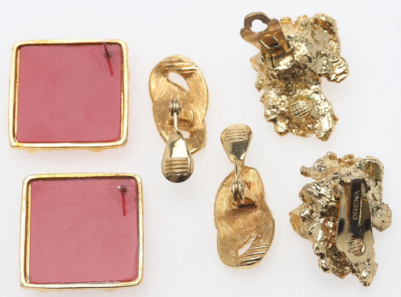 Erica North, yellow metal and plastic, for holes, length approx. 3.8 cm Orena, Paris, yellow metal and carnelian, clip, length approx. 3.5 cm Monet, yellow metal, clip, length approx. 2.8 cm. Fitness report Condition of use. 115398