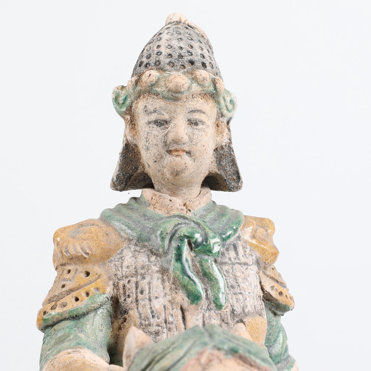 Grave escort "warrior", glazed and painted in green, yellow, red and black. Loose removable head.