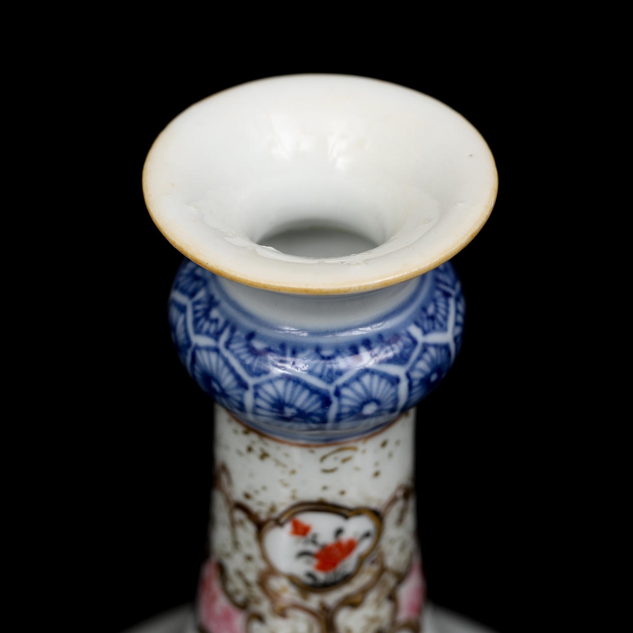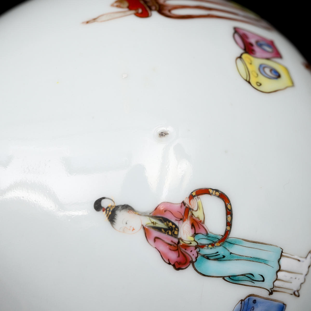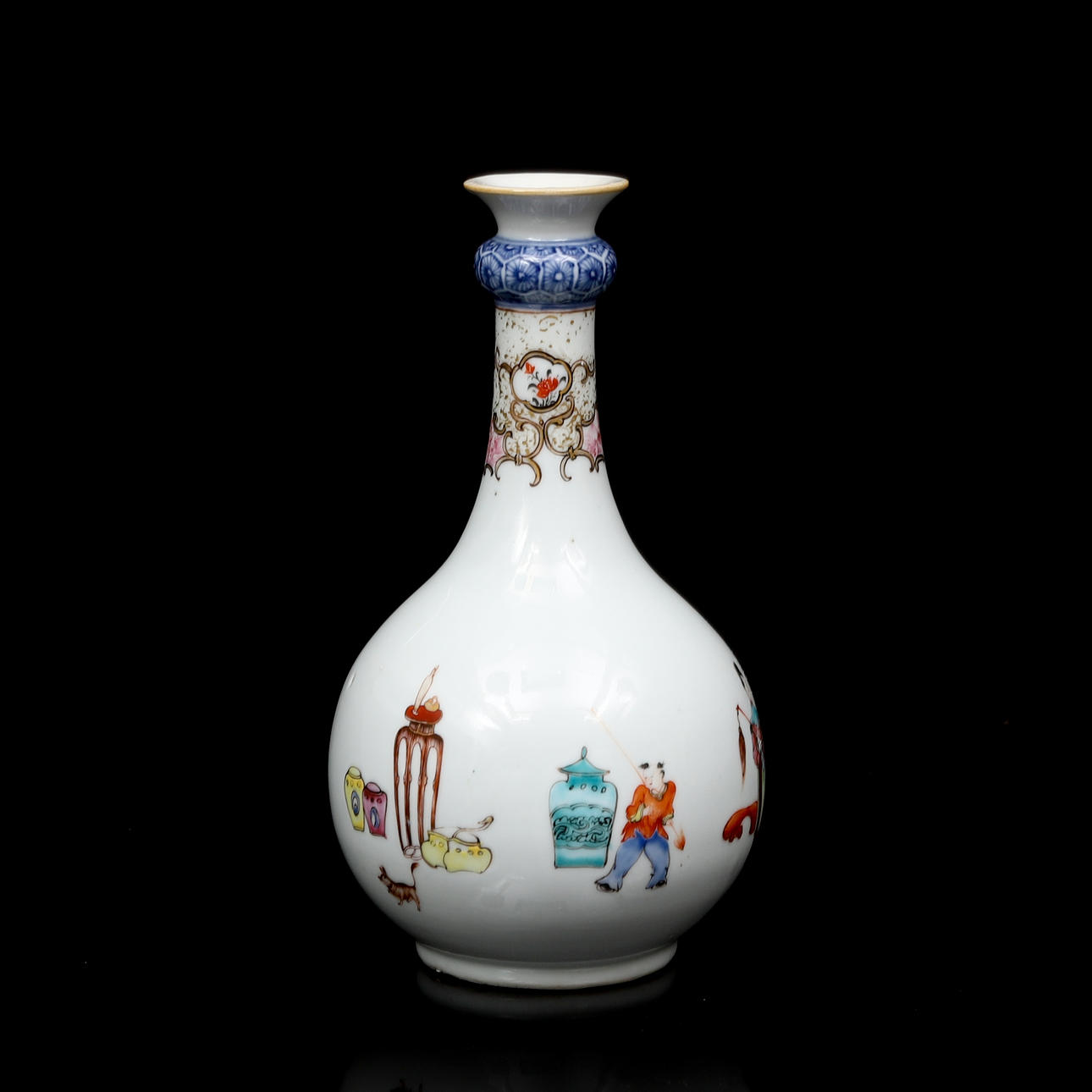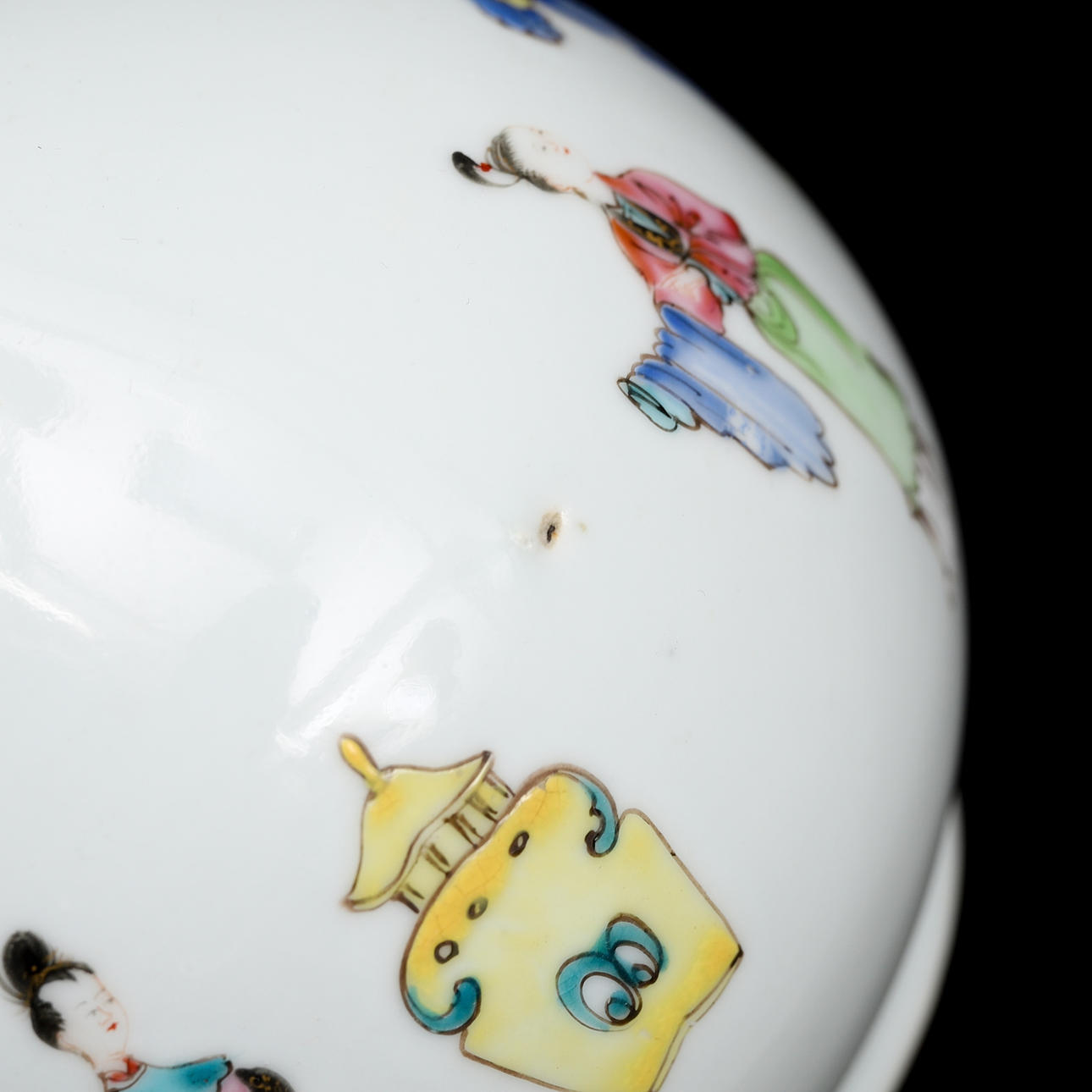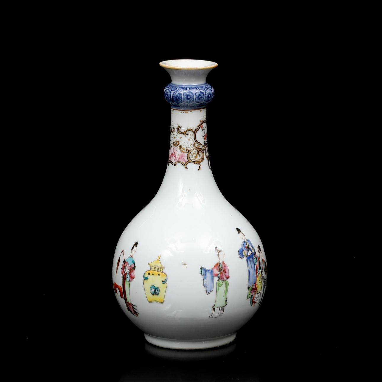 Baluster-shaped with figure scene in famille rose. Height 25 cm. Condition report Manufacturing defects. A chip on the underside of the brim. Glaze mist. A chip on the foot ring. 29626