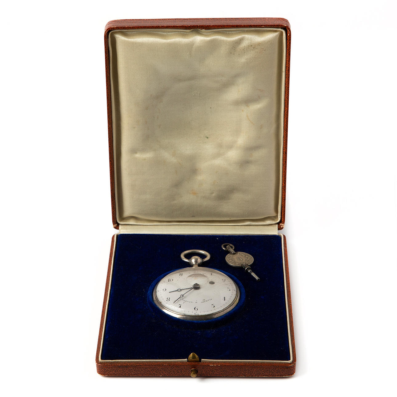 Key missions with spider gait and mineral glass. Serial number: 15029 Swedish case dated 1831 and signed AWÅ Diamètre: 53 mm Case and key included. Condition Worked at the time of cataloging. No functional warranty is provided. Service history unknown. Normal wear and tear and damaged dial. 32548