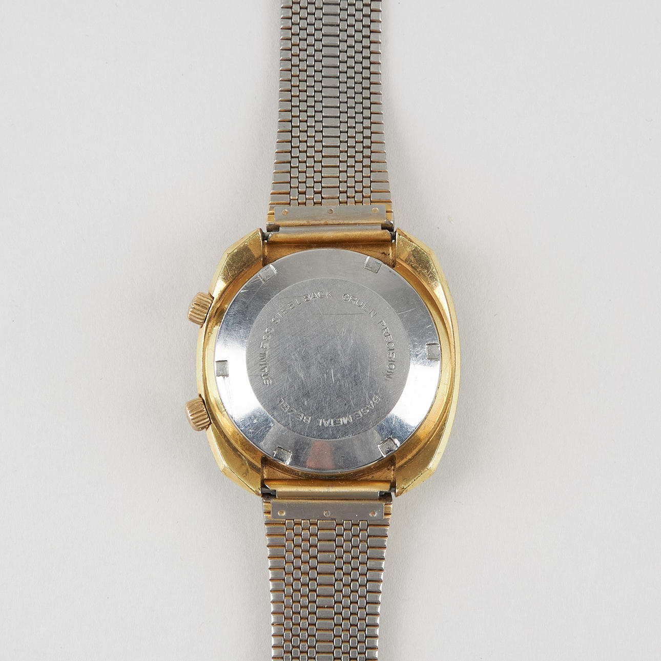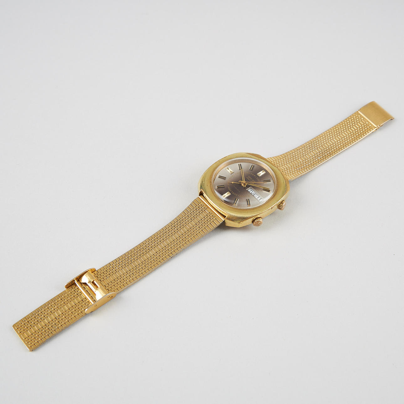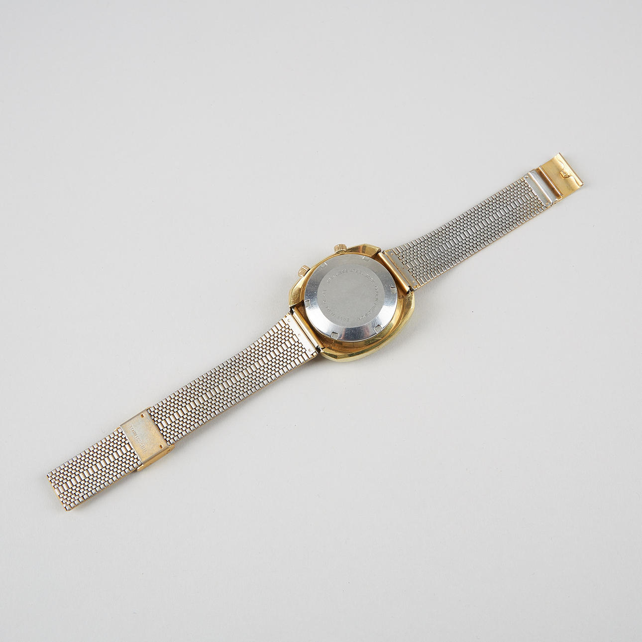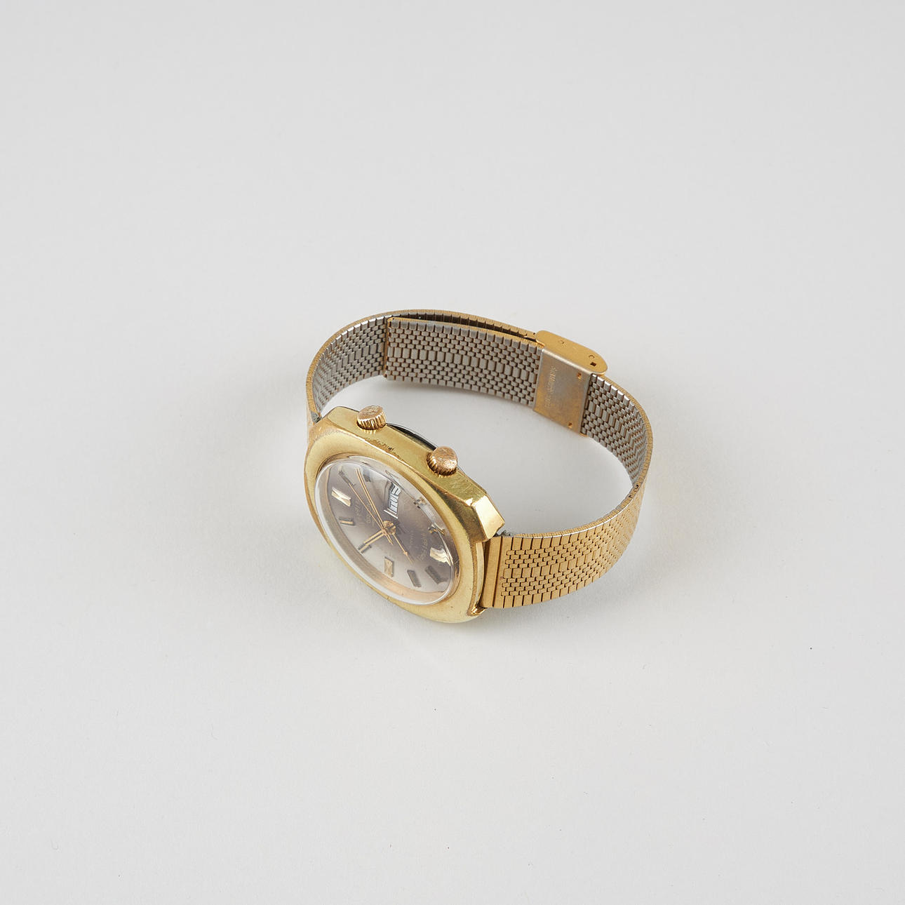 Day, date, metal bracelet not original, alarm function, reference number 961 CD, caliber 5008.