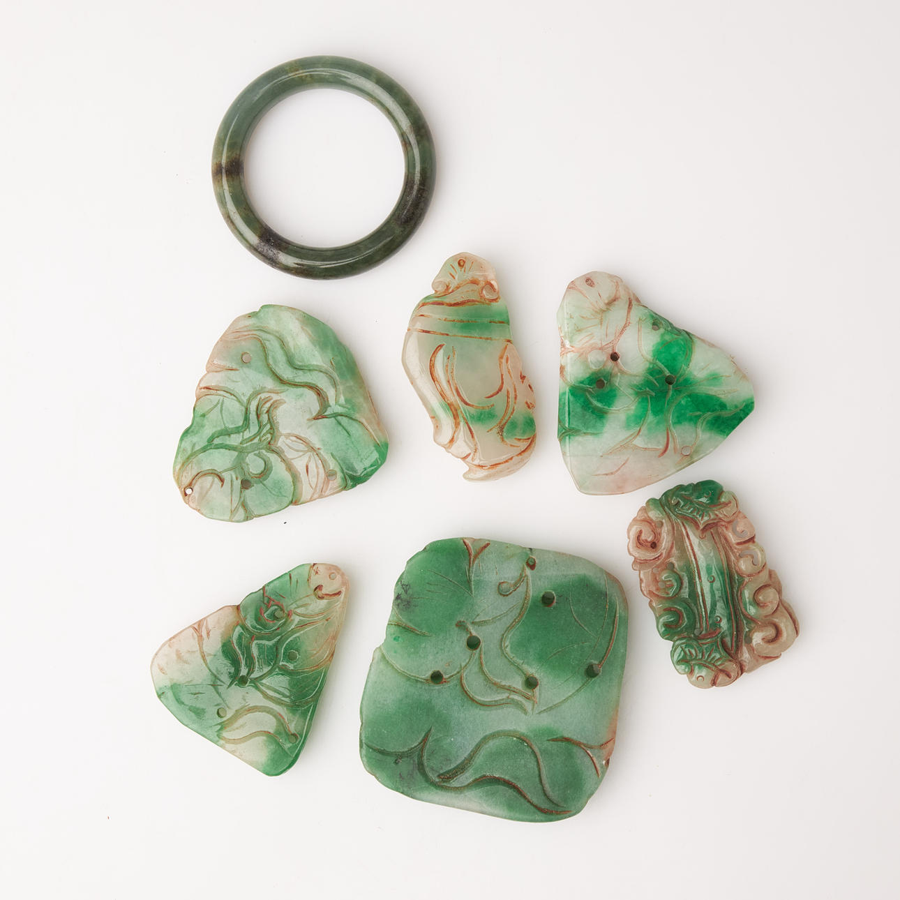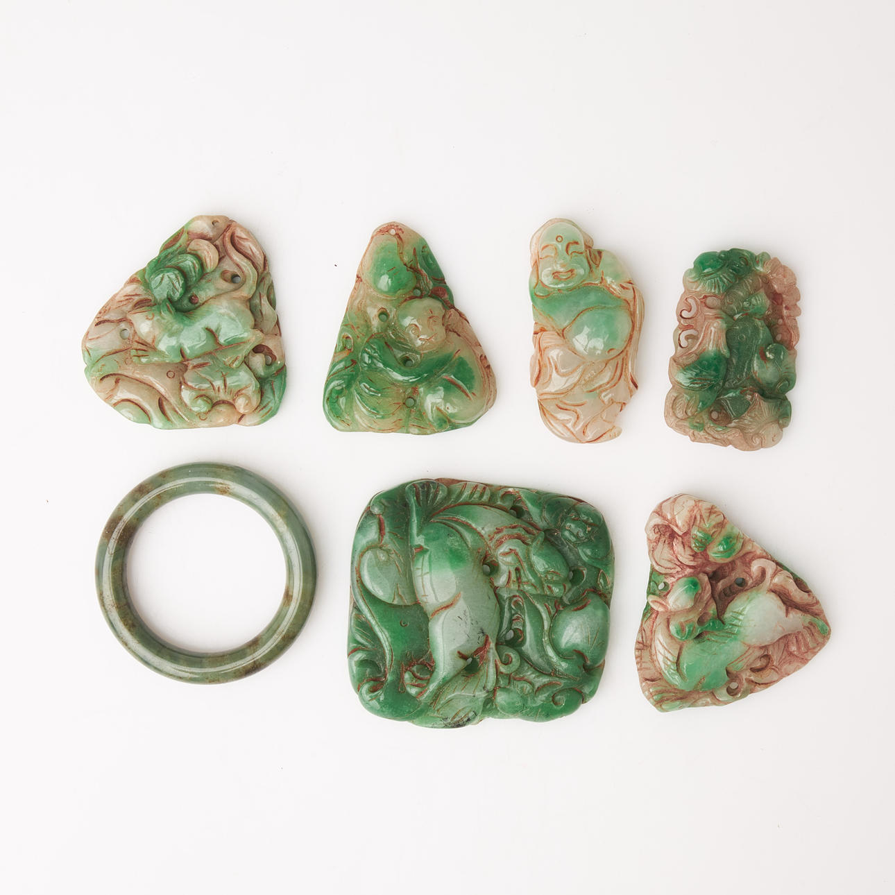 JADE, 7 dlr, bracelets and buckles, cut decor, China.