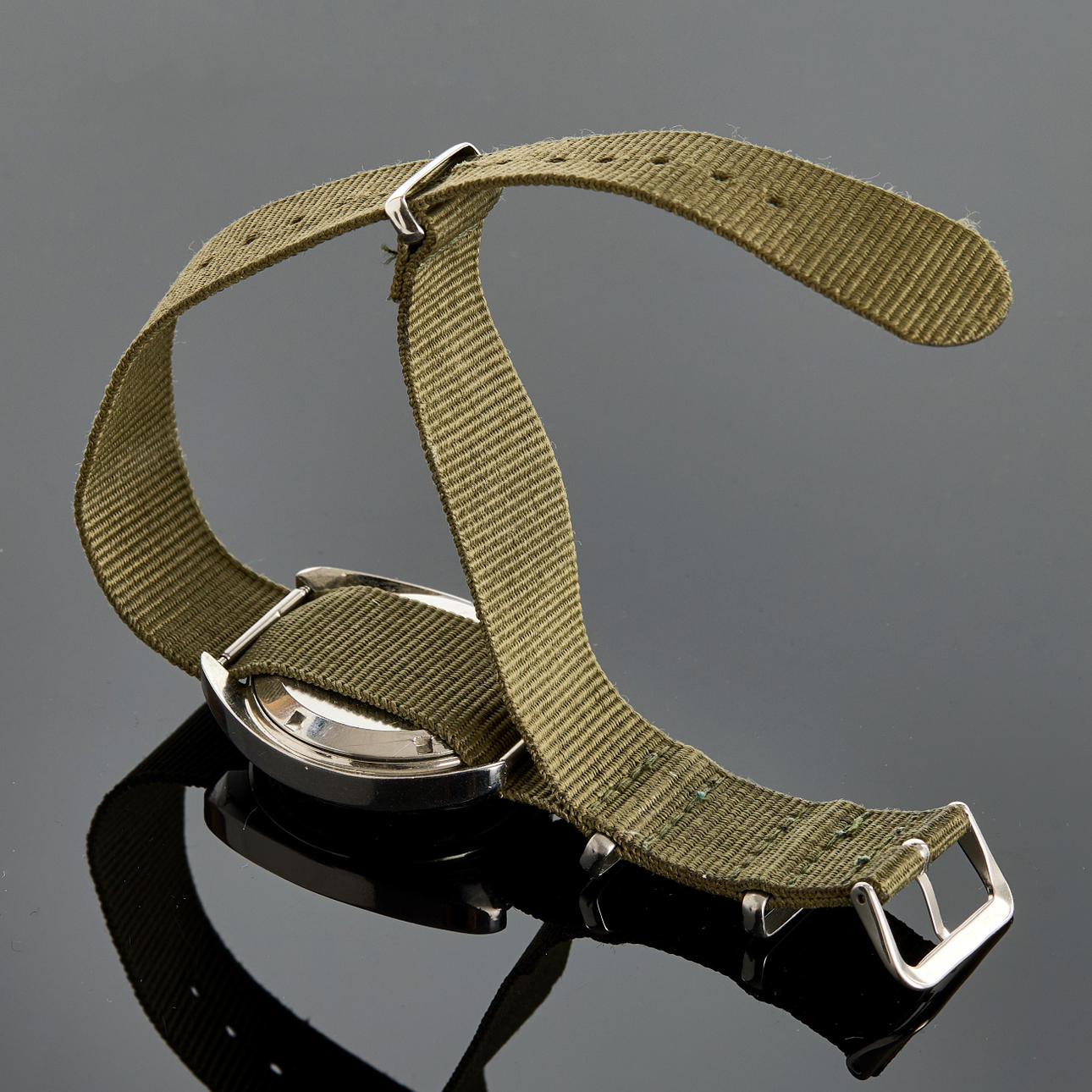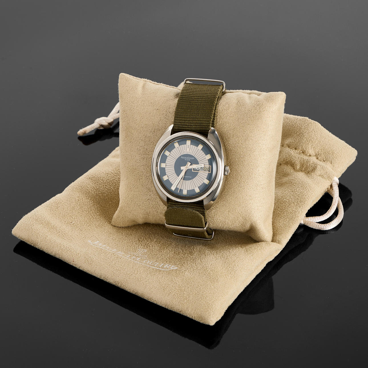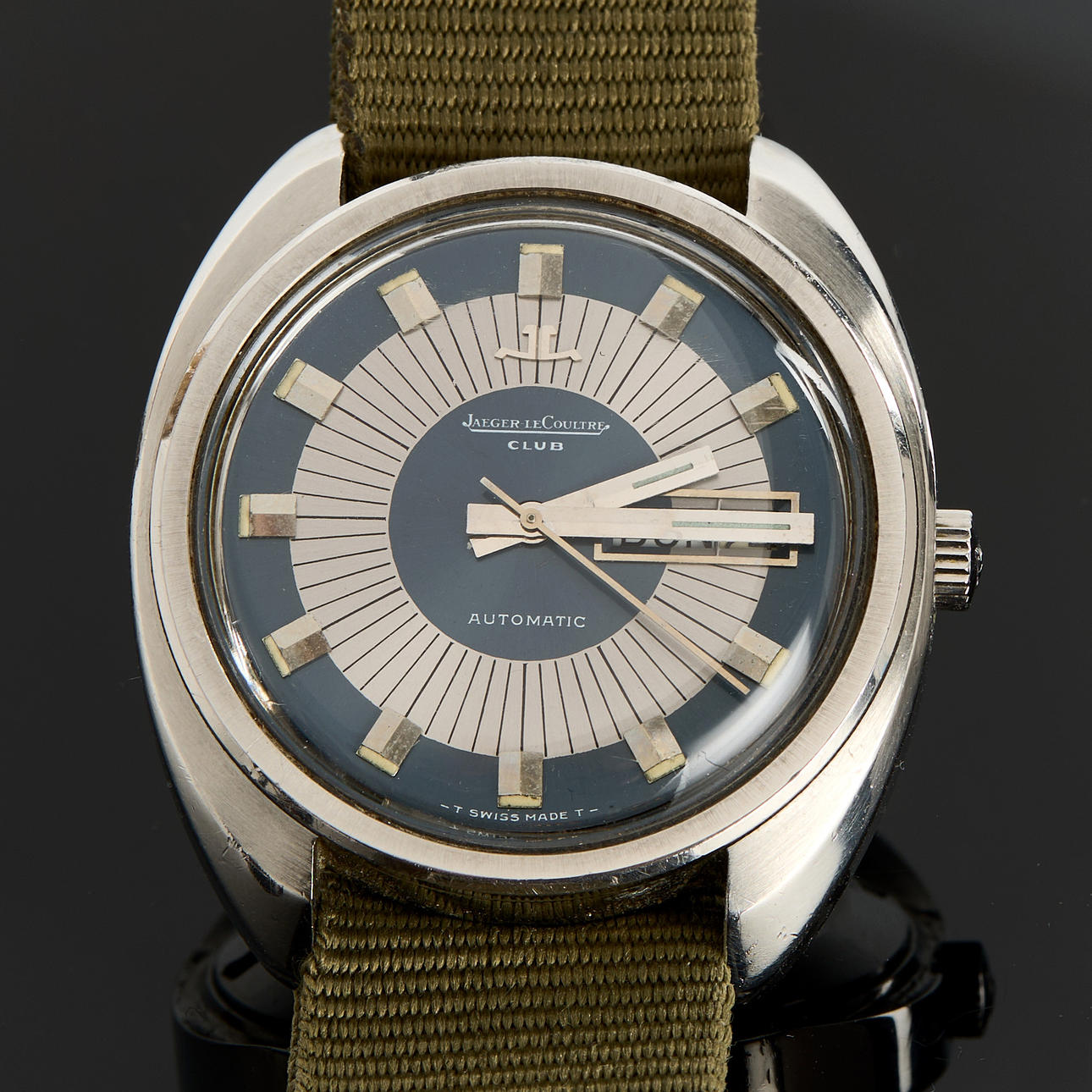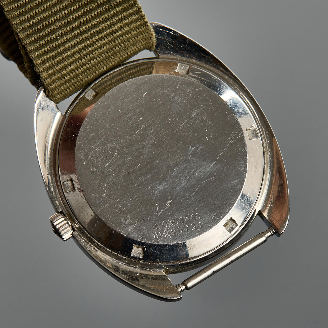 Cal. A Schild 2066, Ref no. E0300405, 38mm, steel, self winding 25 jewels, plastic crystal, natoband, date, case no. 81285791, circa 1970. JLC Reset case. Condition Age-related wear. Worked at the time of cataloging, no functionality warranty is provided. 80599