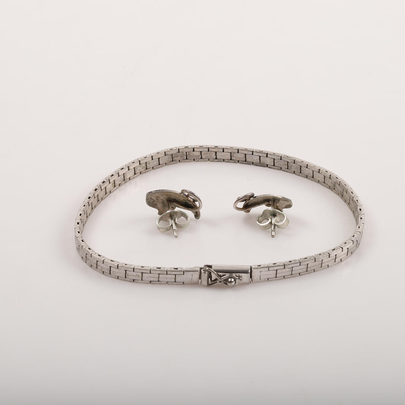 1 pendant with chain, figaro link 1 bracelet, wardrobe mat 5 pairs of earrings. Condition Normal wear and tear. 262627