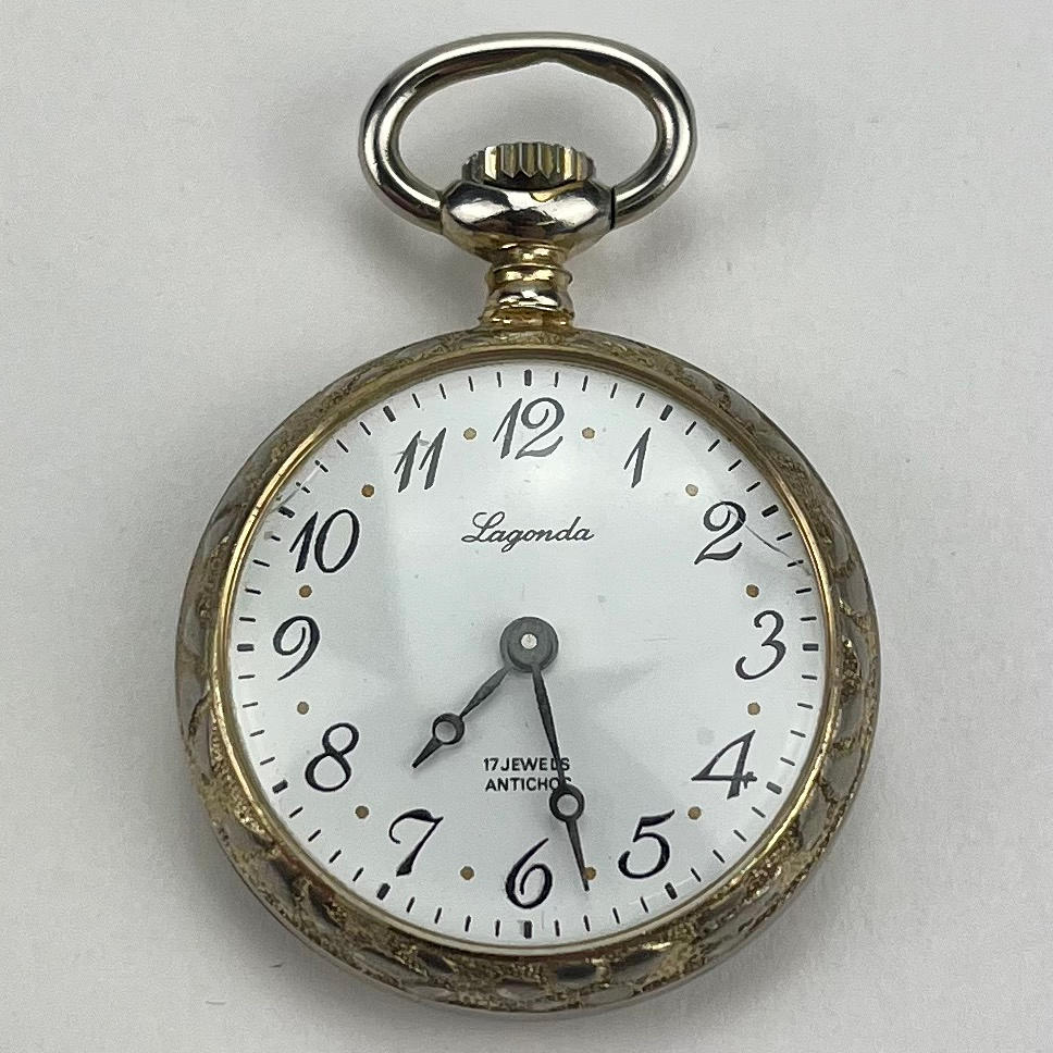 Pocket watch, diameter approx. 30-45 mm. Wristwatch, approx. 34 mm. Jewelry, including rings, necklace with pendant, earrings. Condition Not functional tested, not fully reviewed, no functional warranty is provided. A ring with an inscription. Pocket watch, glass and ring loose. 18165