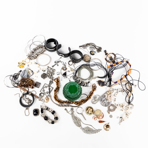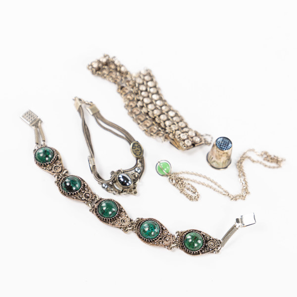 Jewelry, 11 pieces, silver, including amber, weight 113.5 grams Jewelry, thimble, 5 pieces, silver, weight 53.7 grams Jewelry, costume jewelry, a lot*2
