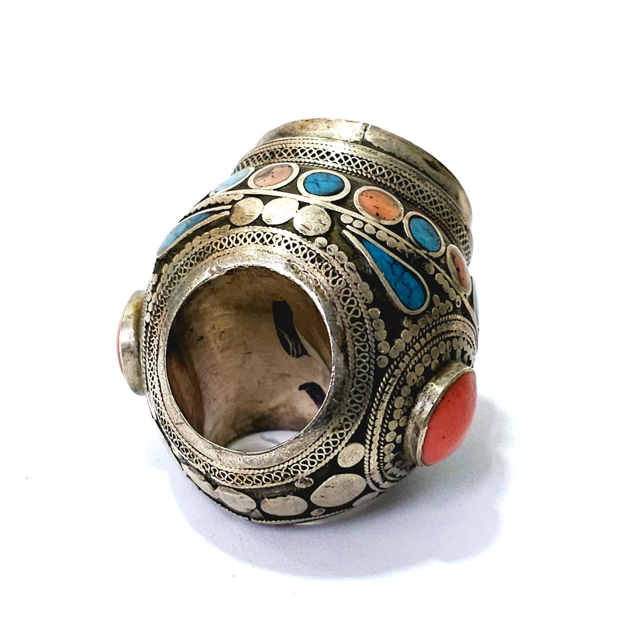 LARGE OTTOMAN-STYLE RING IN CHISELED SILVER WITH LAPIZLÁZULI.