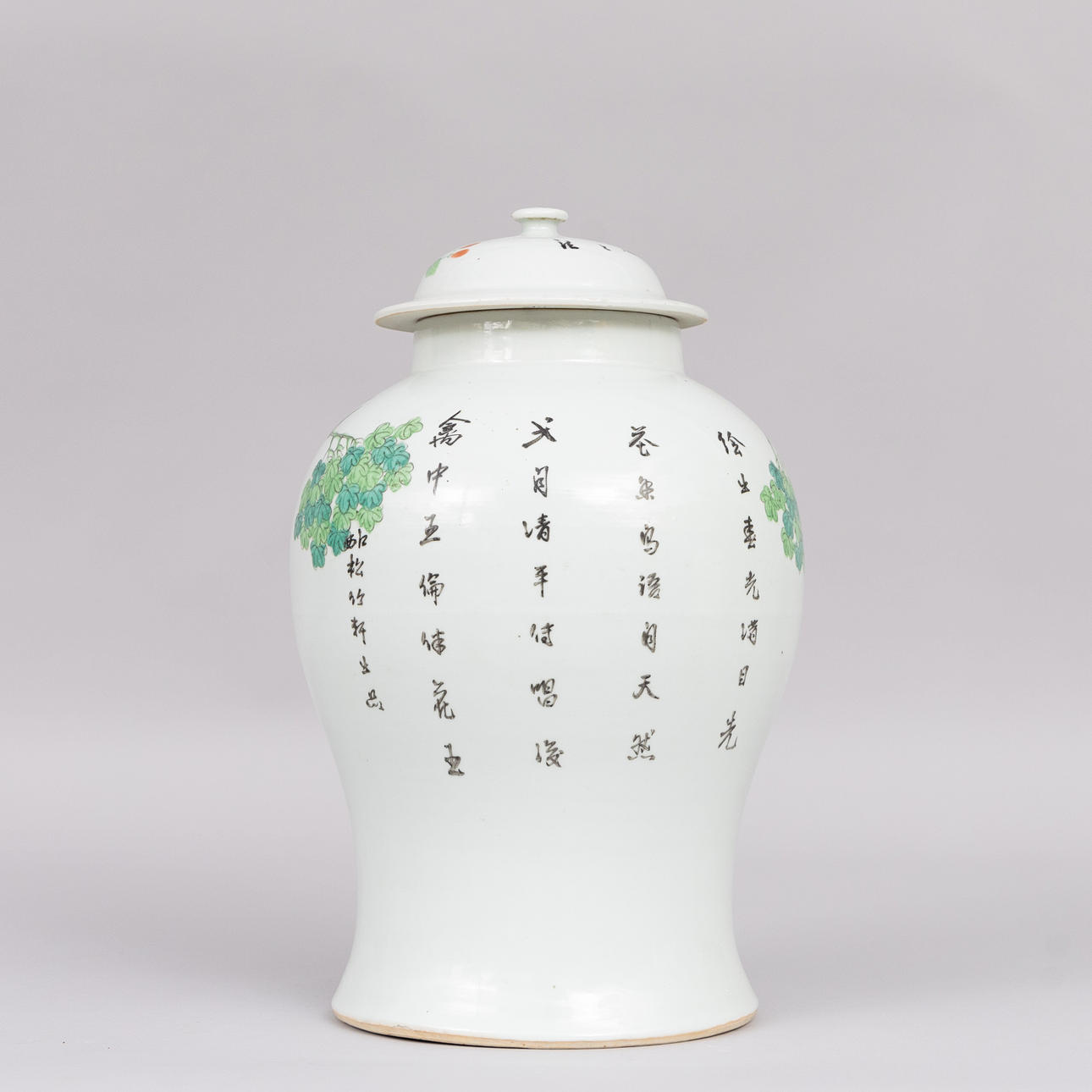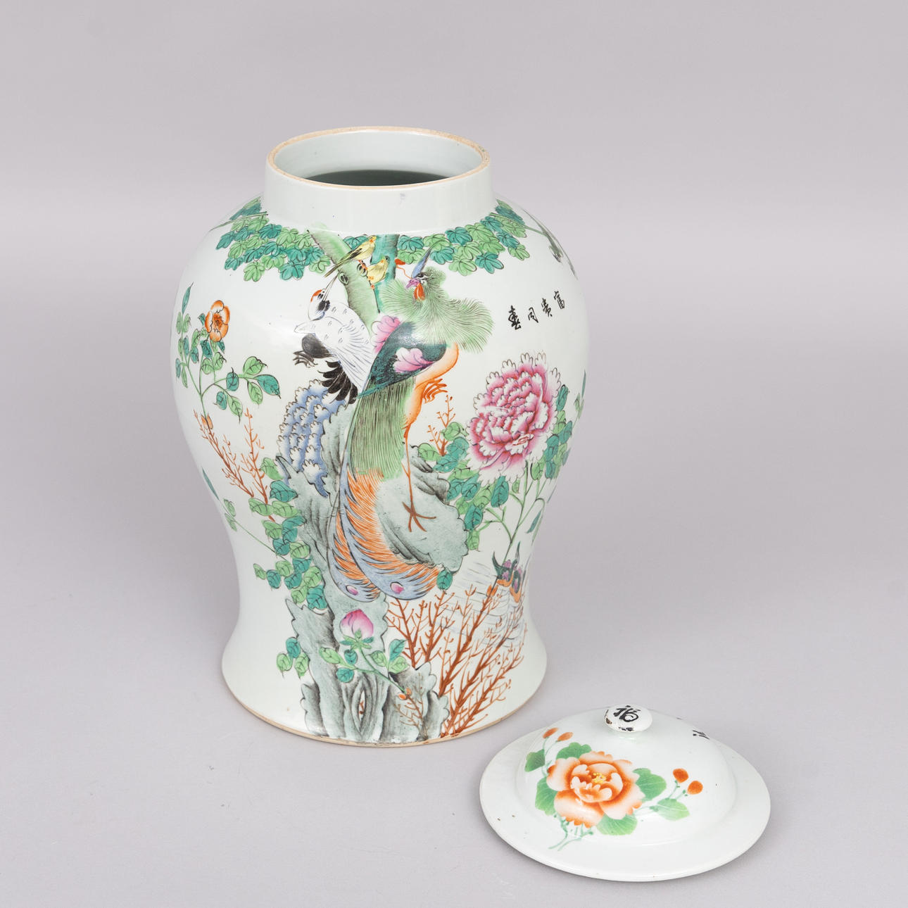 LARGE PORCELAIN LOCKING URN, Famille rose, possibly late Qing, China.