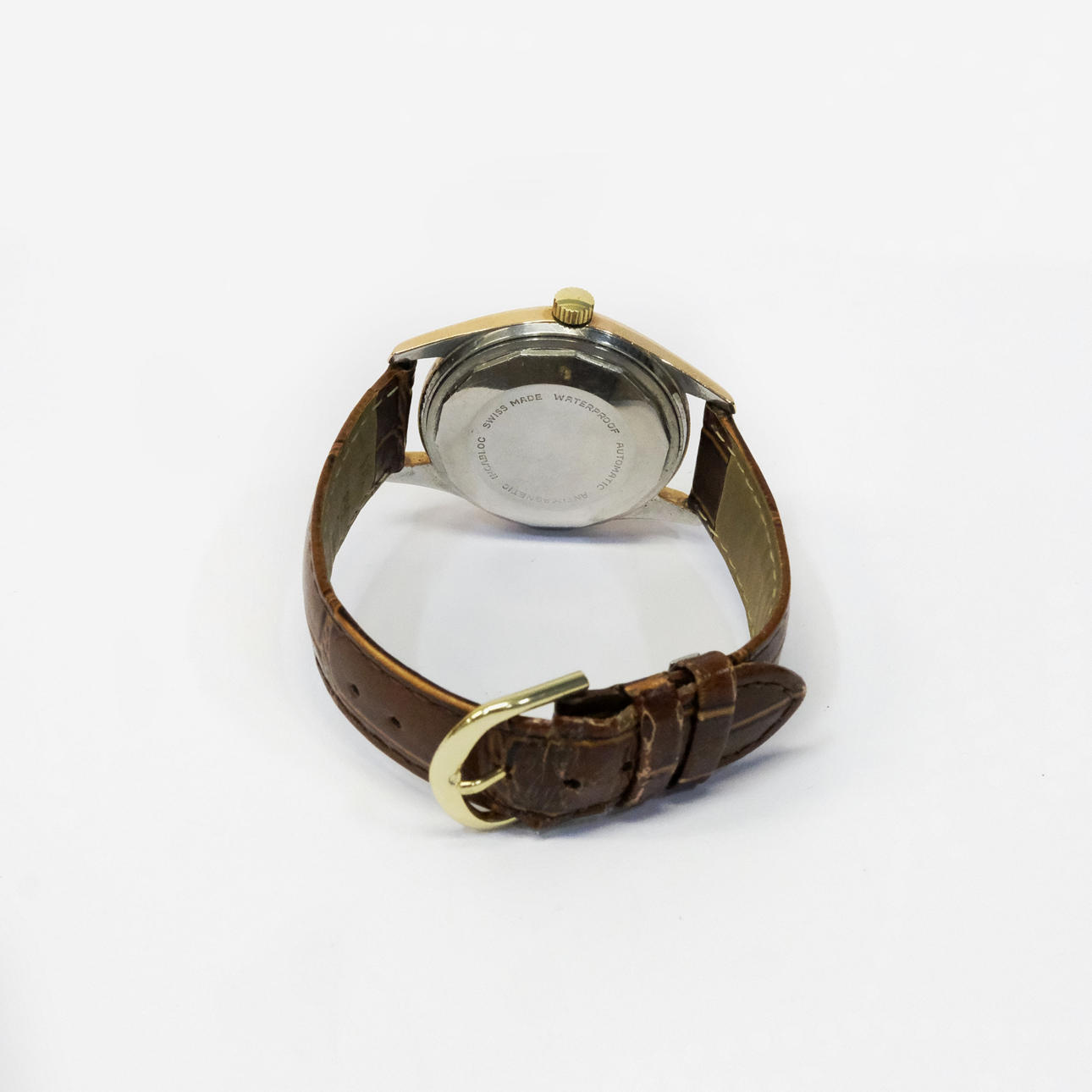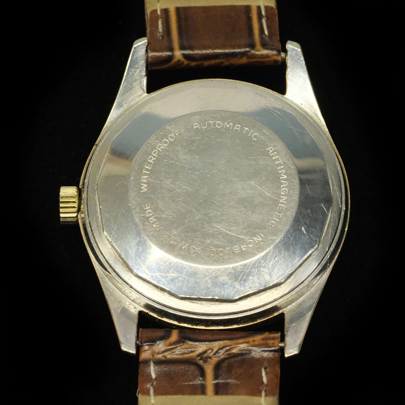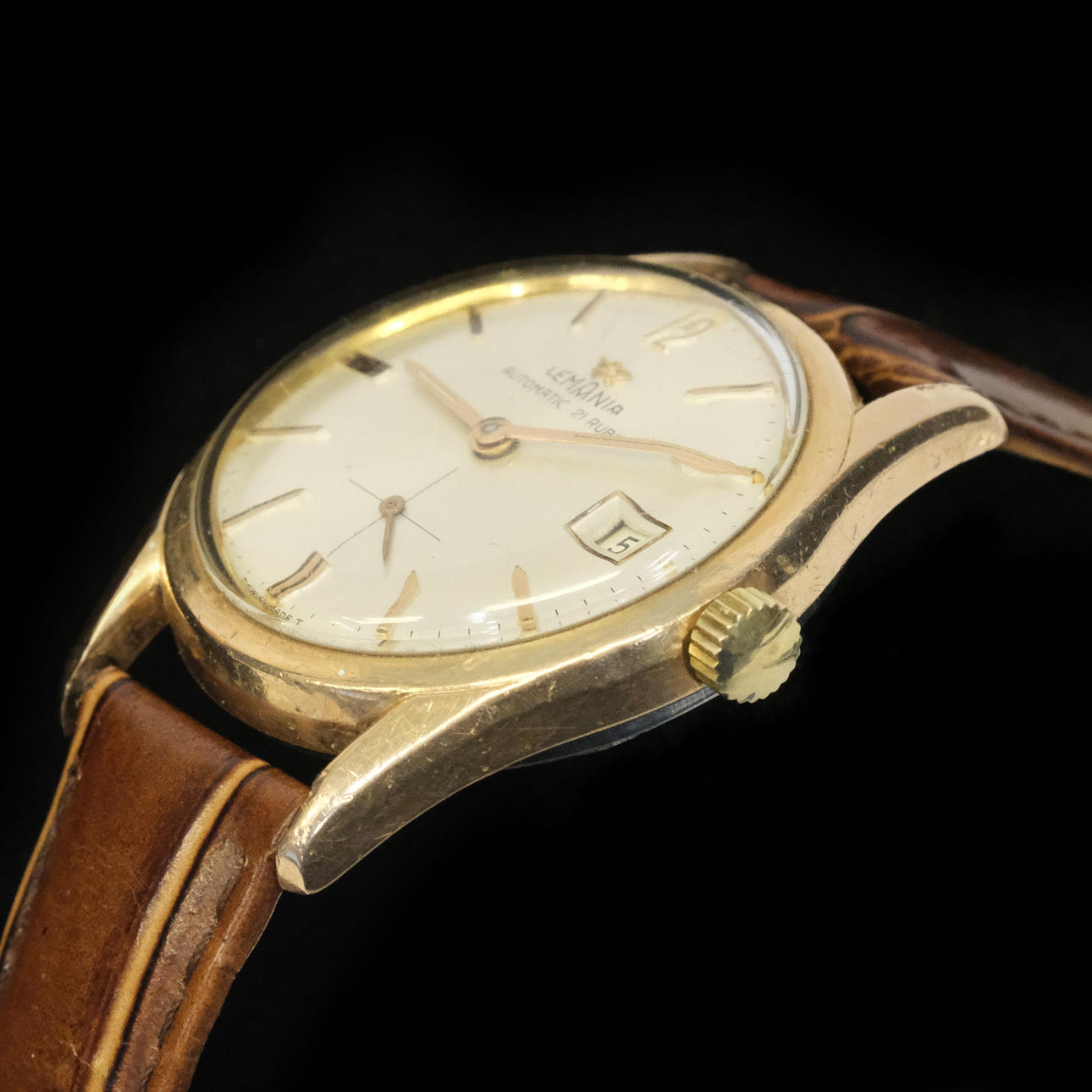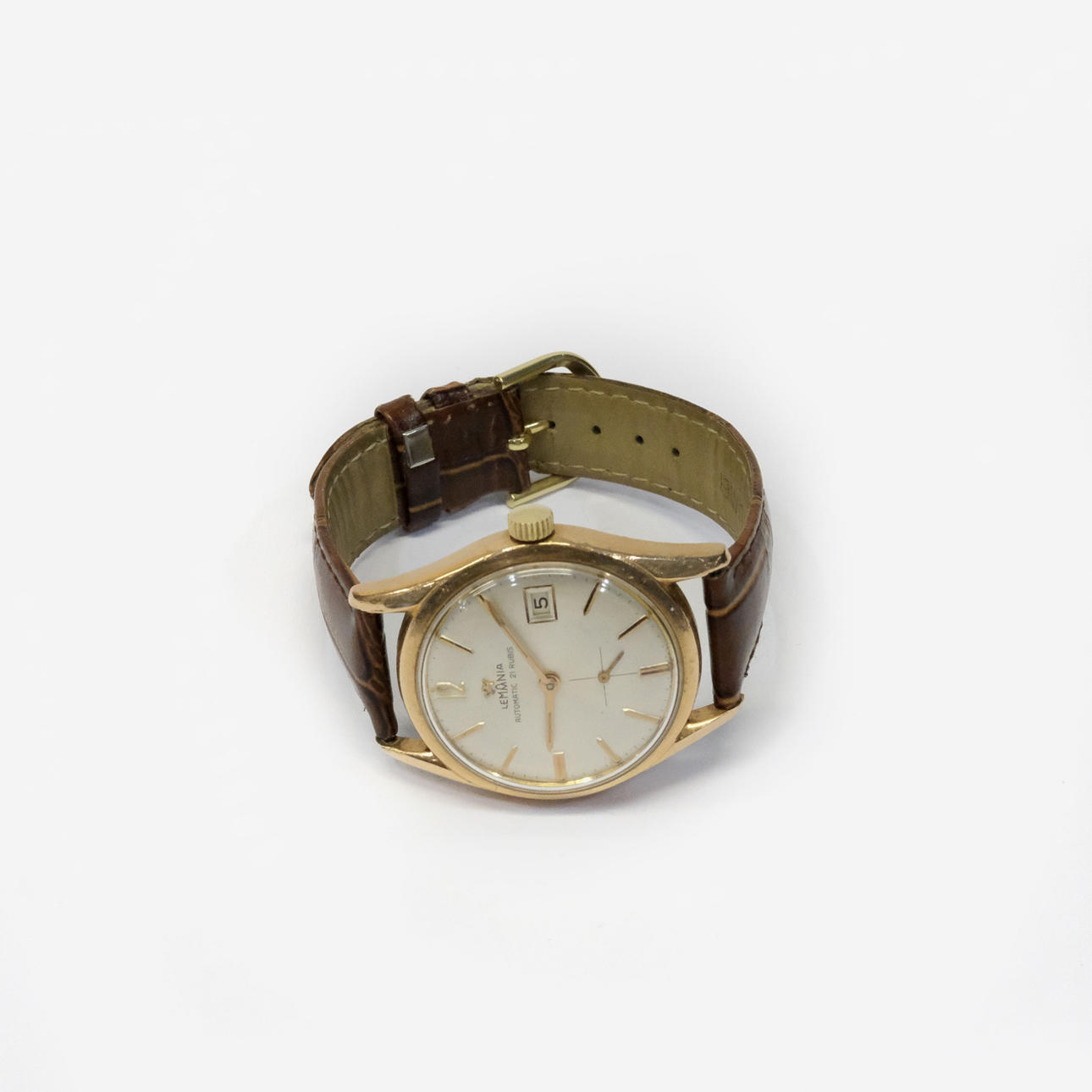 Gold on steel. Separate seconds viewer and with date display. Diameter: about 36 mm. Condition Does not appear to work, no warranty is given. Unexamined clockwork, in need of revision. Scratches. 25908