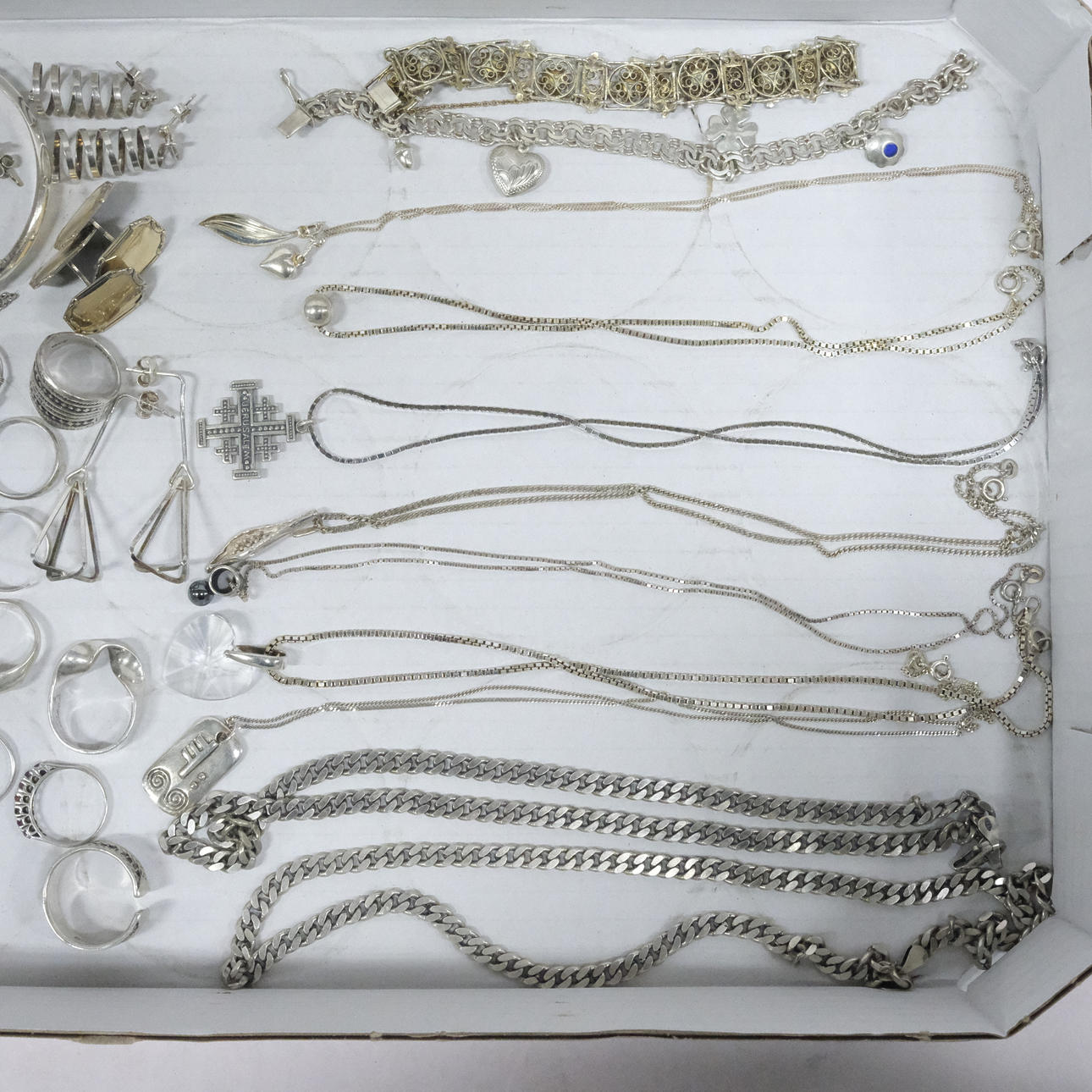 Jewellery including bismarck bracelet with charms, earrings, cufflinks, 18 rings, necklaces etc. Condition Normal wear and tear, any engraving. 26476