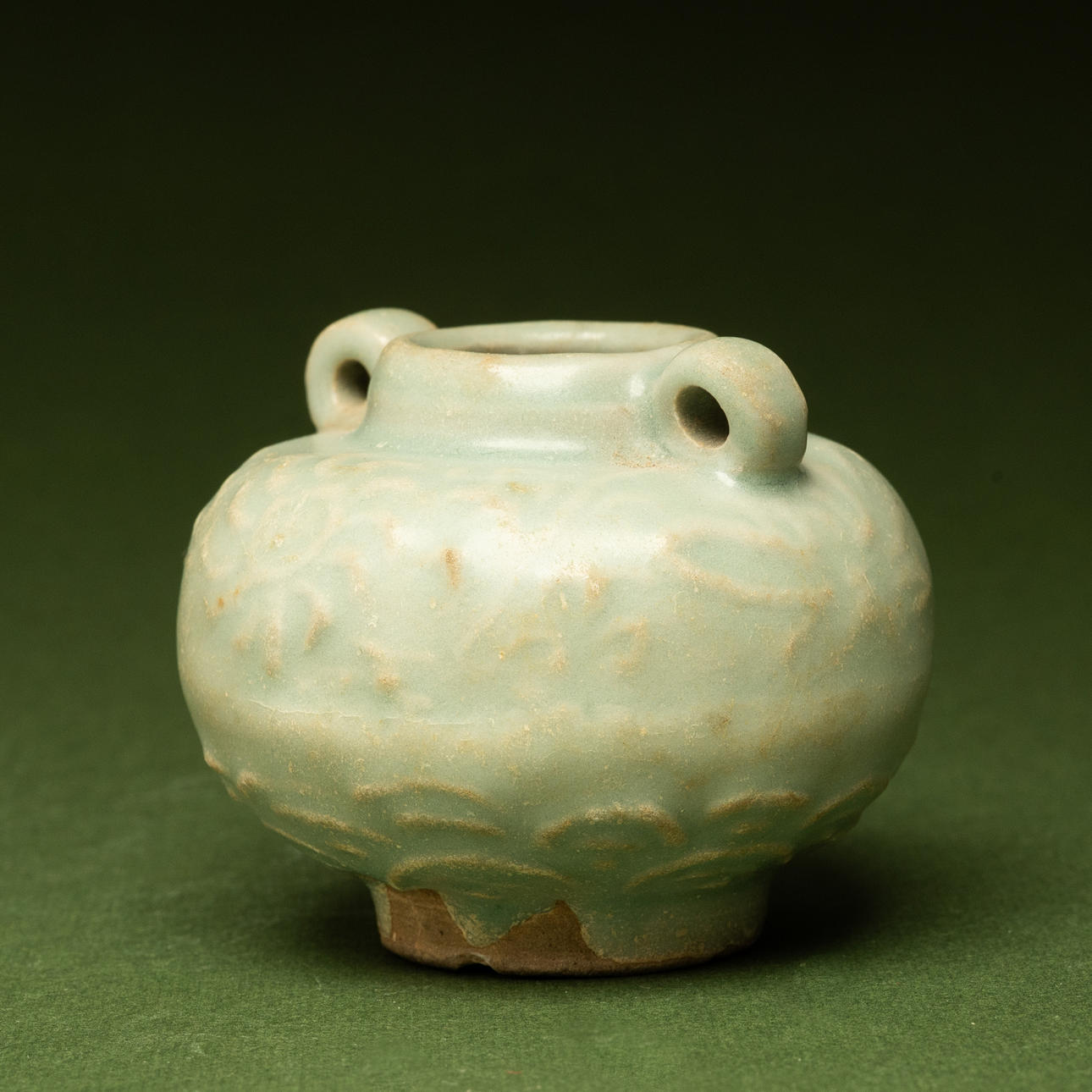 Rounded shape with two hooks, relief decoration, height 5 cm. Provenance: Ulla Nordström, East India Company. Fitness report Age-related wear and tear 276491