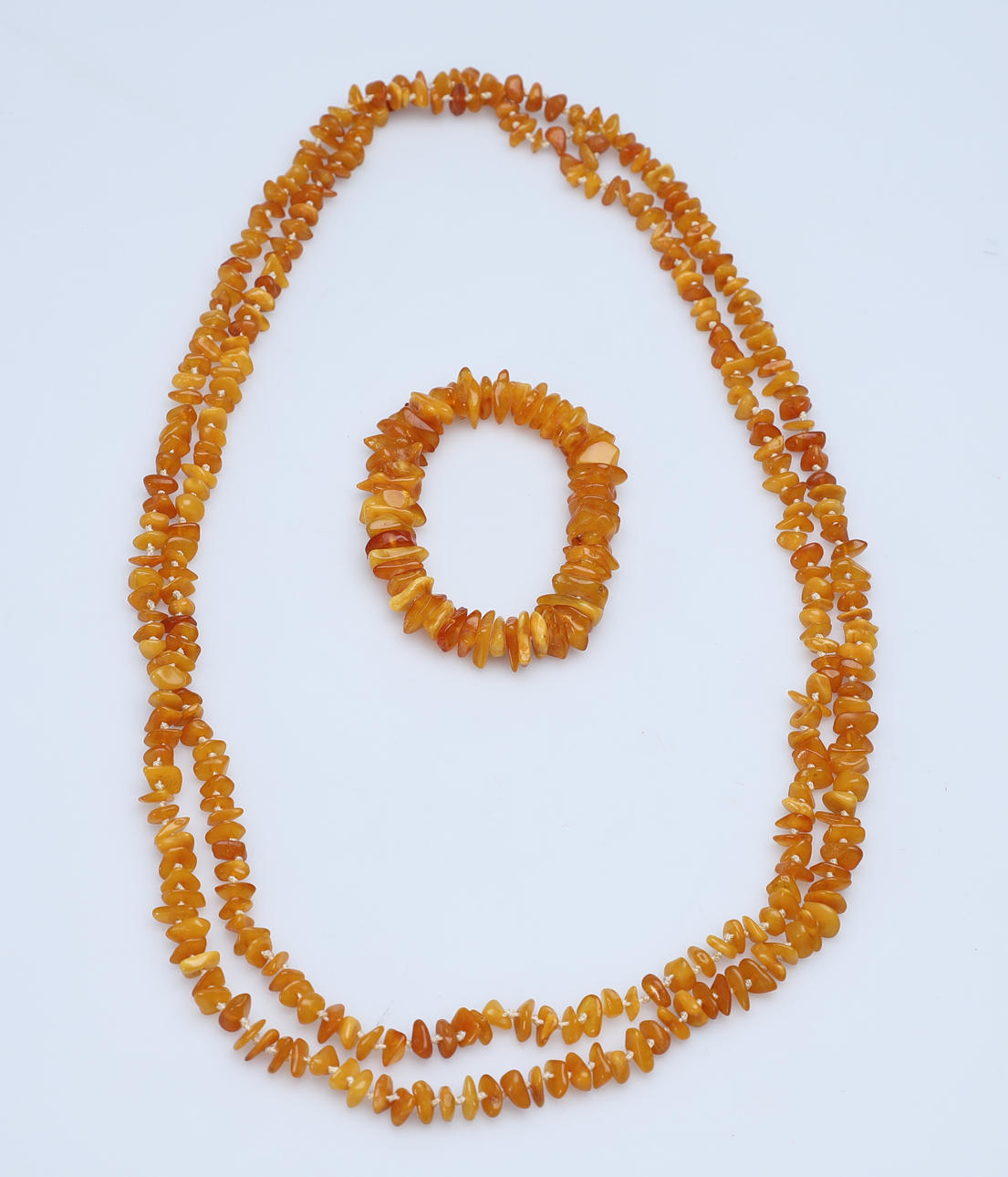 Length necklace 55 and 160 cm respectively. Length bracelet 20 cm, stretchable. Total weight 88 gr. Condition Condition of use. 6001