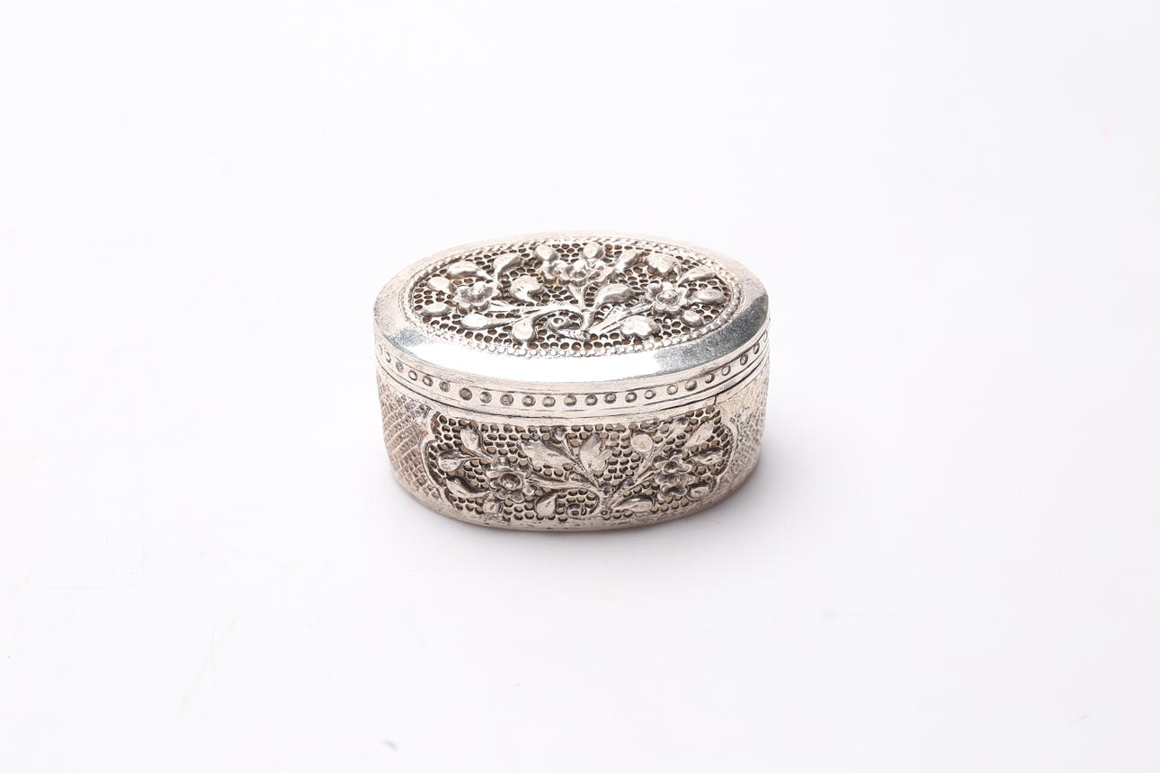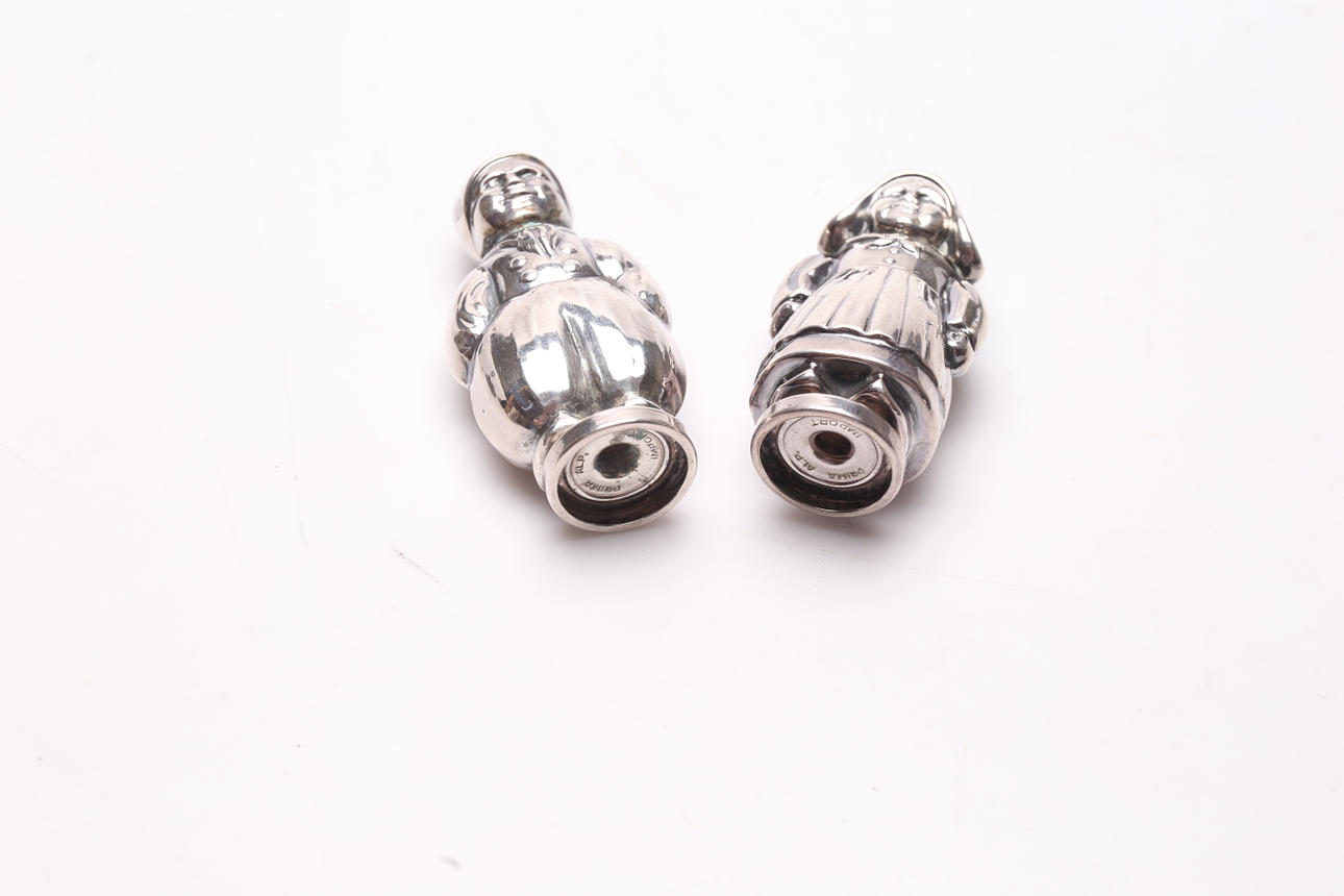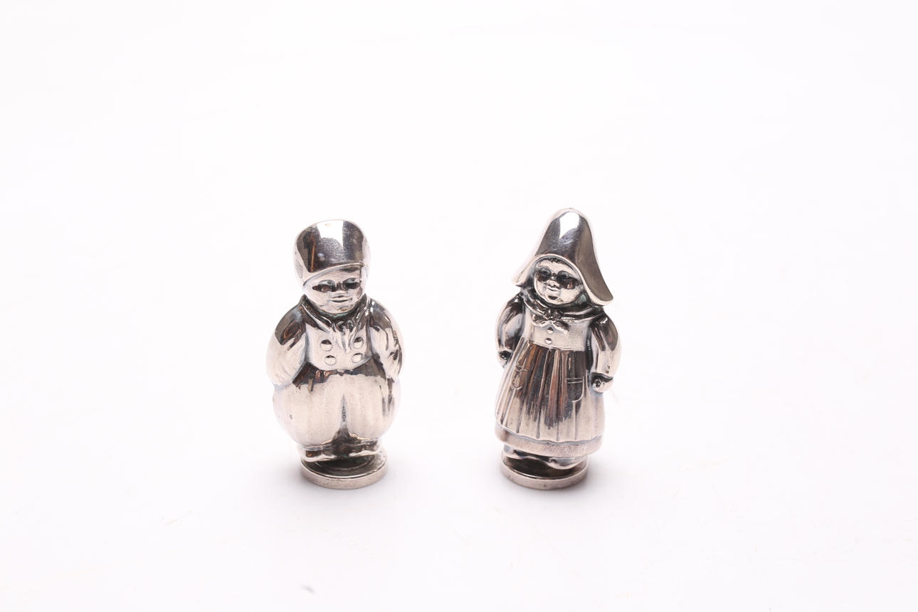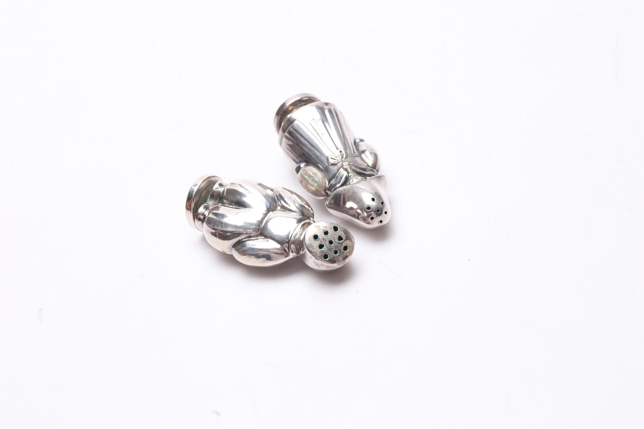 Salt and pepper sticks. Height approx. 7 cm. Box length approx. 7 cm. Condition Salt baths annealed. impact marks. 332390