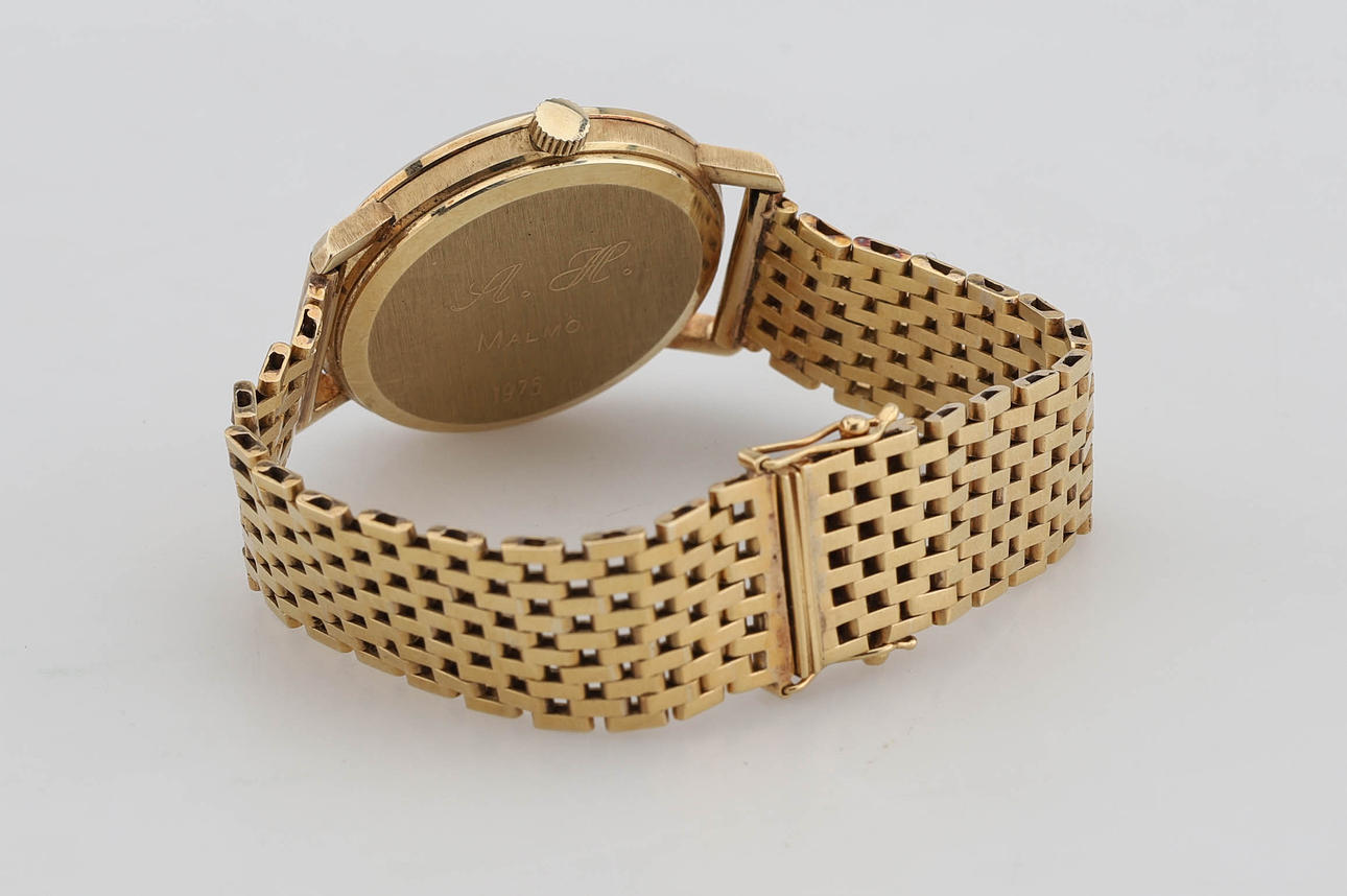 Plexiglas ! Date Later bracelet in 18K gold Case diameter 34 mm Total weight 63 g. Condition Scratches, more part superficial. Engraving. Worked at the time of cataloging. No functional warranty is provided. 27328