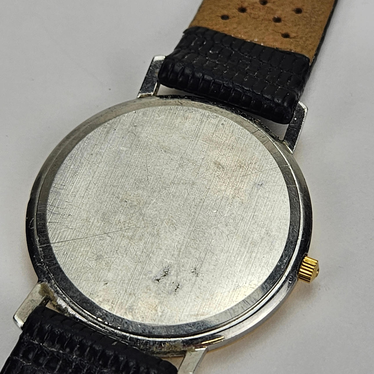 Quartz. Leather bracelet. Approx. 35 mm. Condition Scratches, minor impact marks. Reportedly rusty clockwork. Not functional tested, not fully reviewed, no functional warranty is provided. 14047