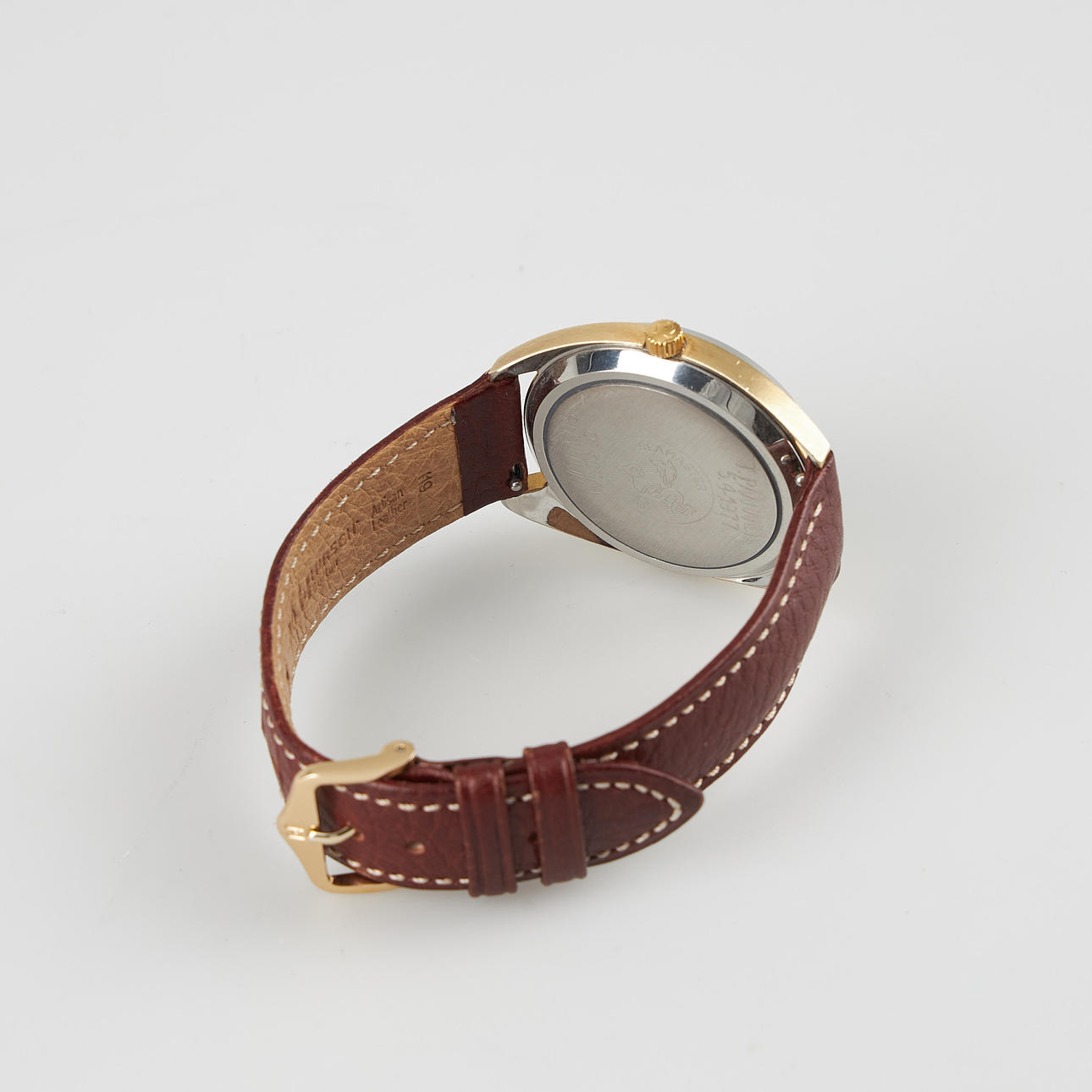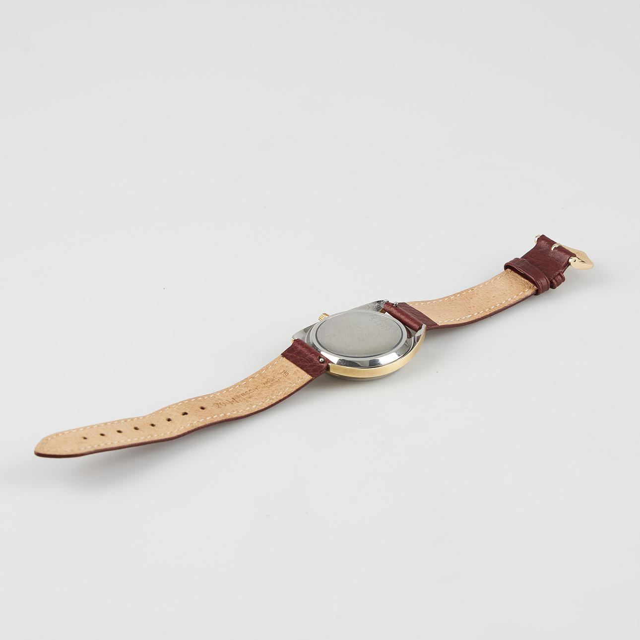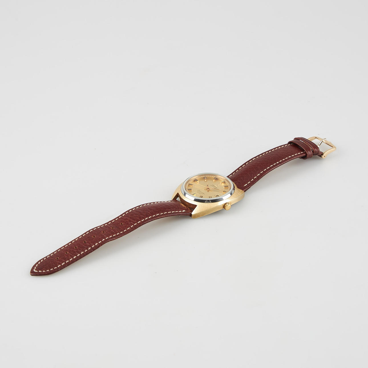 Date, leather strap and buckle not original, reference number 166.130, caliber 1012, serial number 36700785, box.