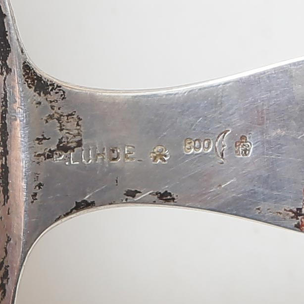 P. LUHDE GERMANY, SOUP SPOON, SILVER, 800 CRESCENT CROWN.