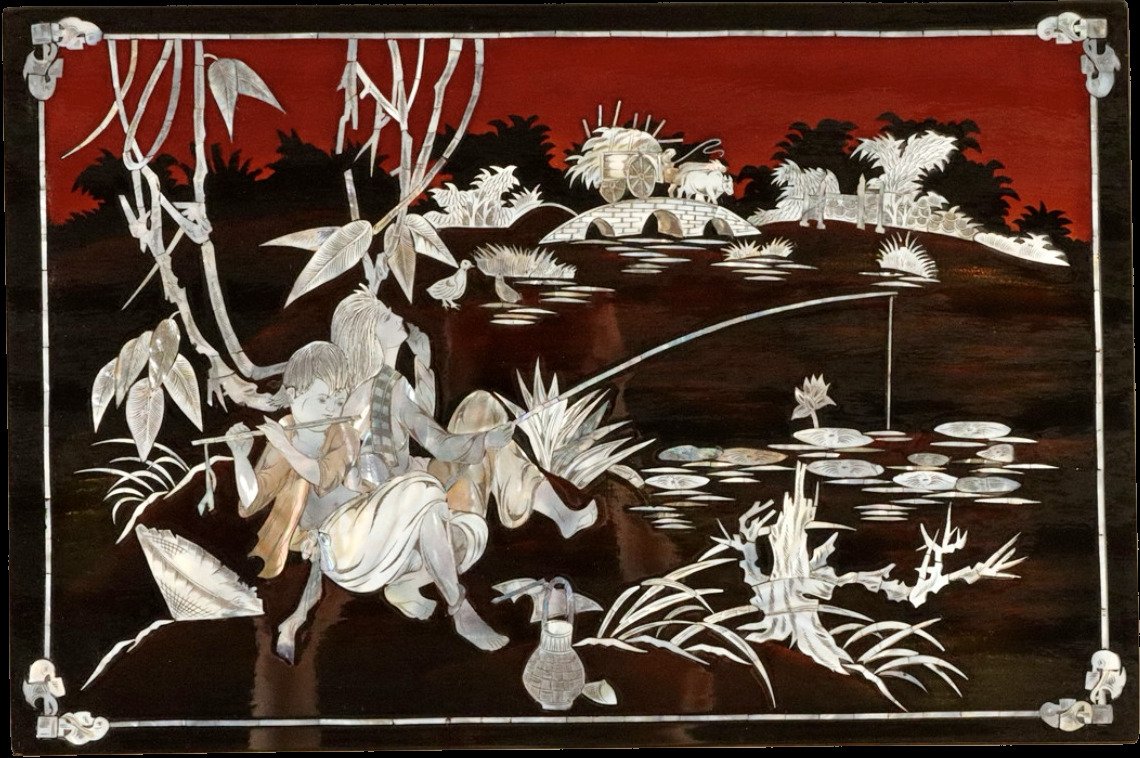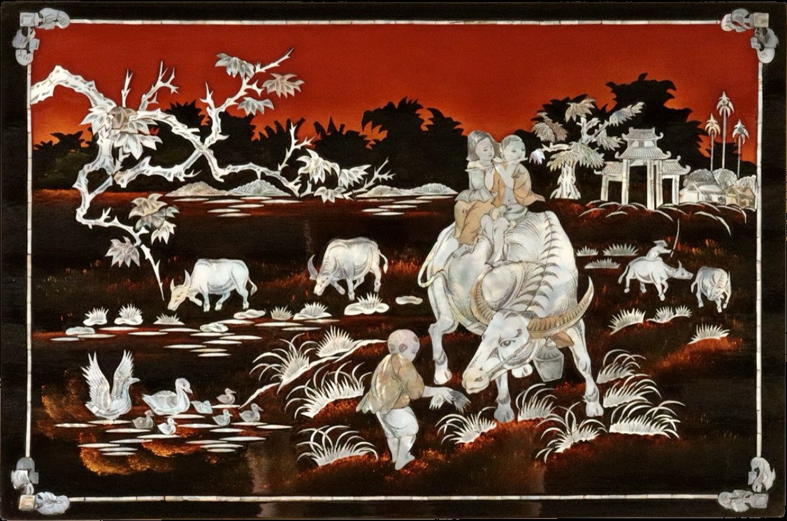 4 pictures of dimension 40x60 each one Lacquer on wood and mother of pearl 32830019