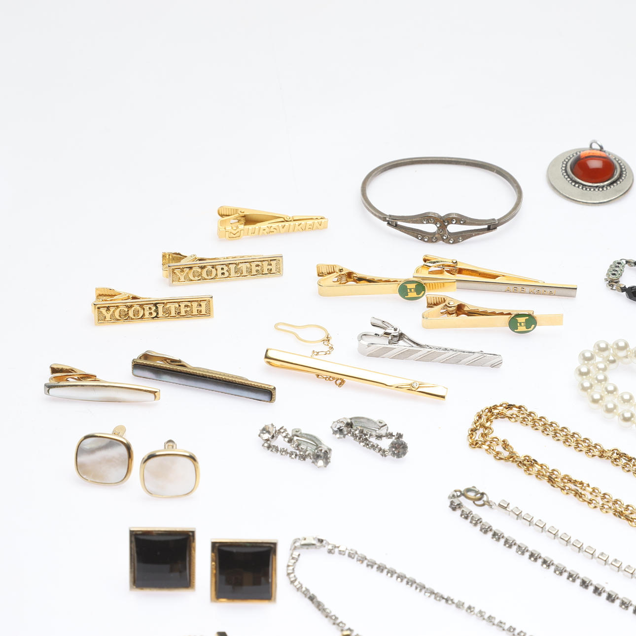 Among other things, a necklace, tie pins and a pendant. Condition Normal wear and tear. Injuries may occur. 150923