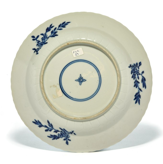 Diameter 24 cm Depicts the zodiac animals in a fjord landscape with mountains and plants in the foreground. The back has three branches with flowers and foliage, and under the bottom are double circles with a symbol. PROVENANCE Björn Gremner, 2000 Current owner is a member of NSOK (Norwegian Society for Oriental Ceramics)