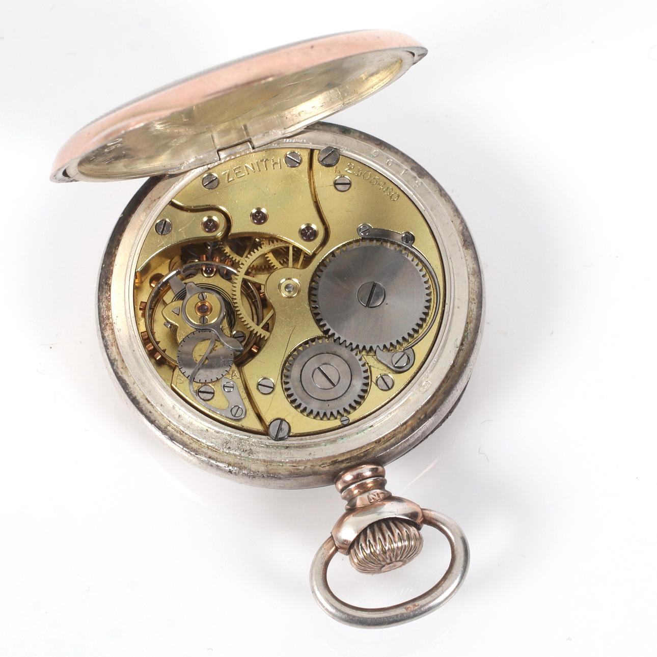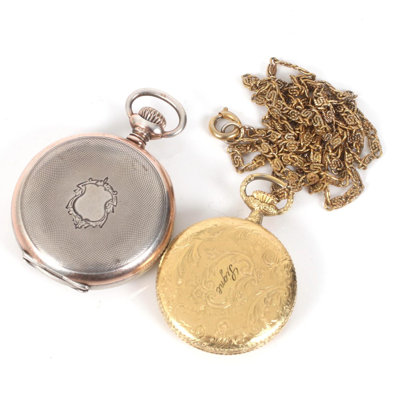 Sk. “mormorsur”, Zenith Grand Prix Paris 1900. Pocket watch, silver, Zenith, case number 3092536 6106, diameter 35 mm, weight 37 grams. Pocket watch, double, Sovereign, one 1 jewel, diameter 30 mm, watch chain, length 61 cm. Condition Wear and tear. Both watches work at the time of cataloging. No functional warranty is provided. 210721