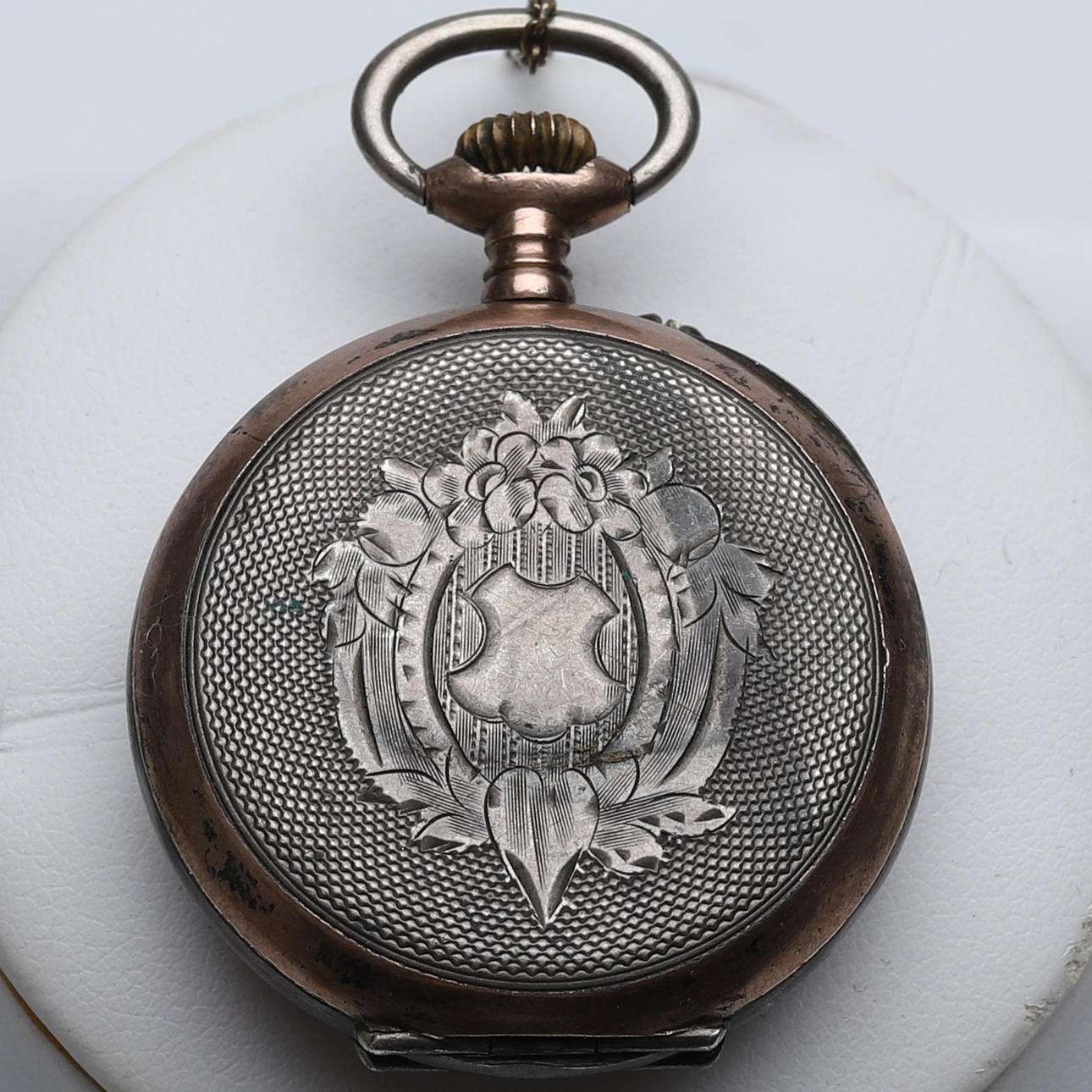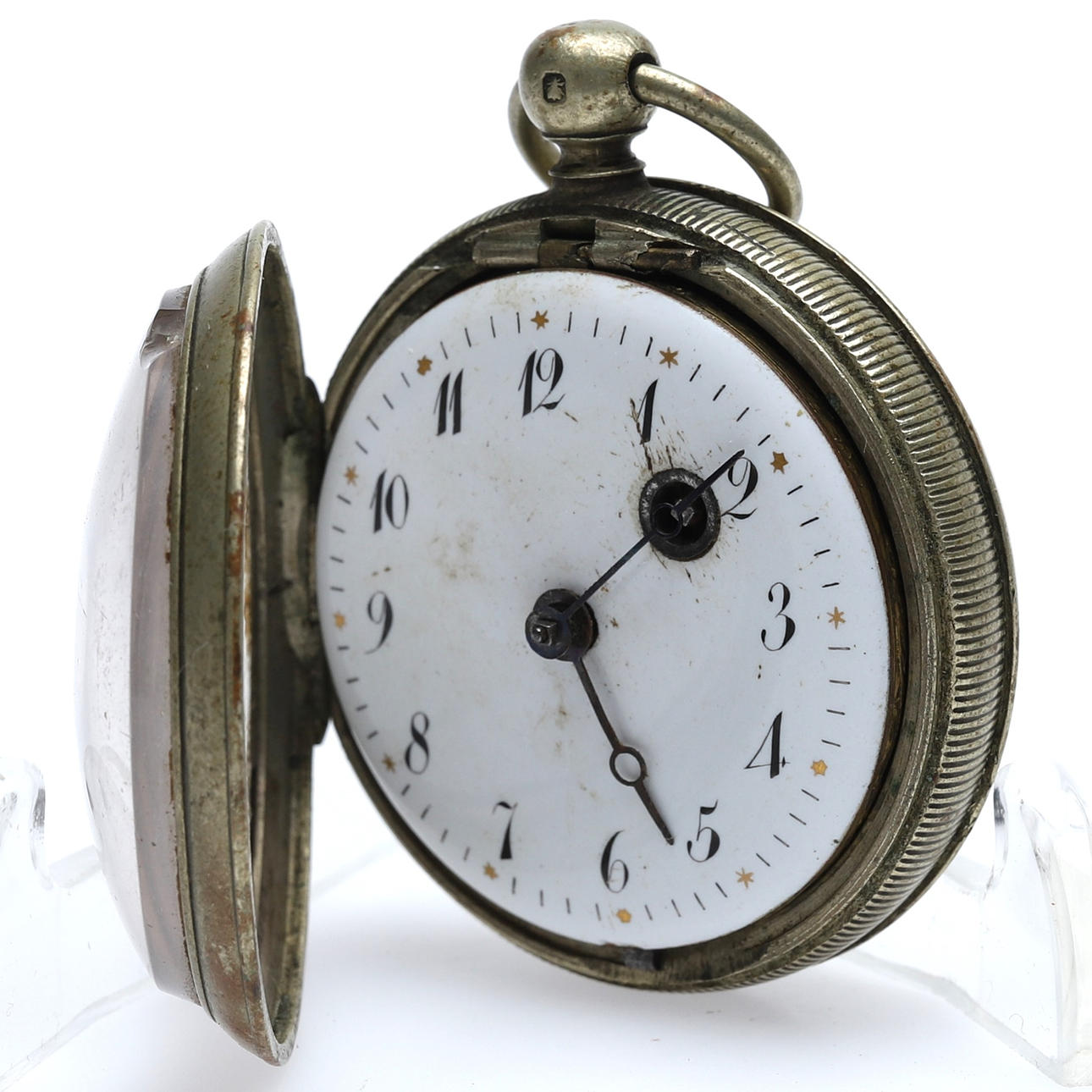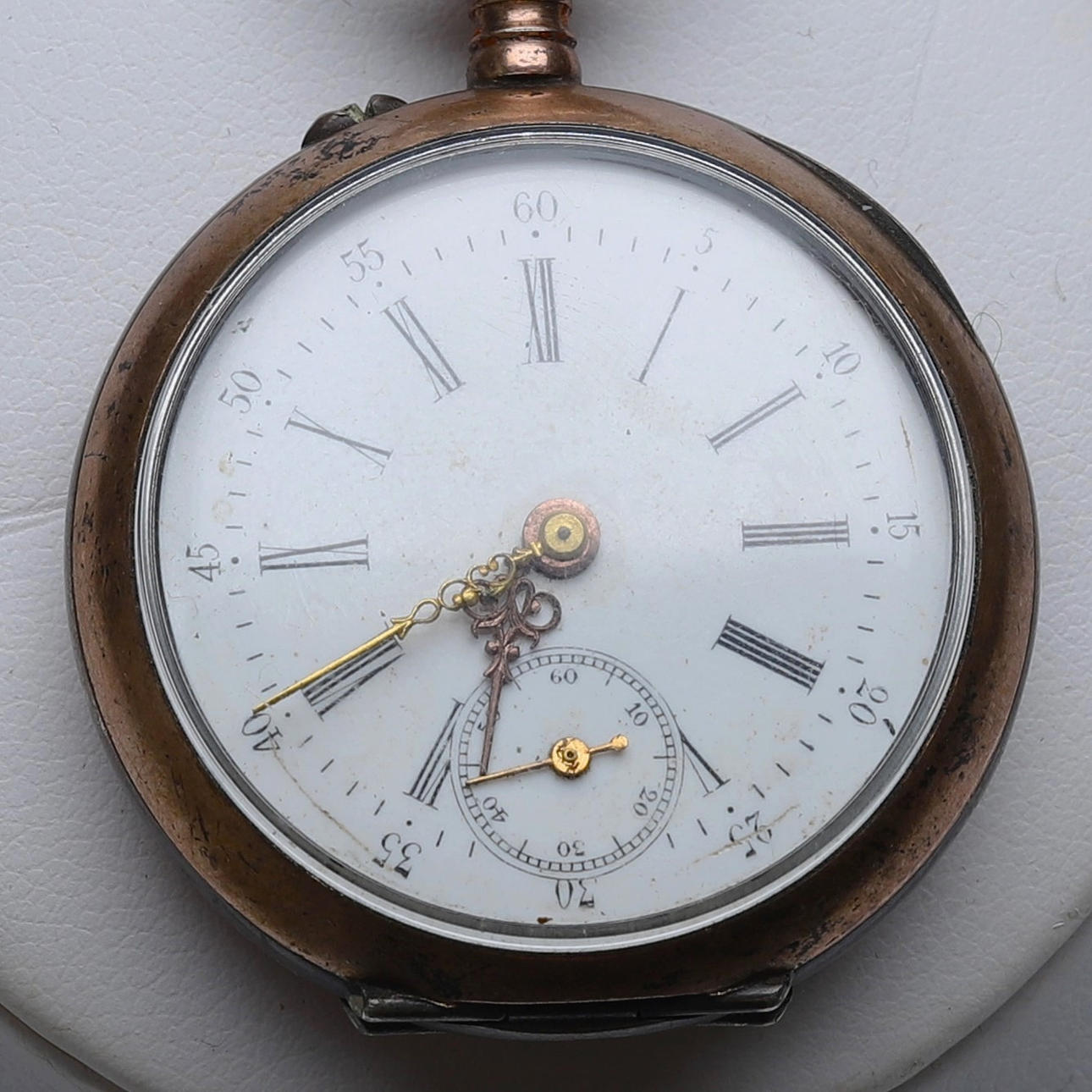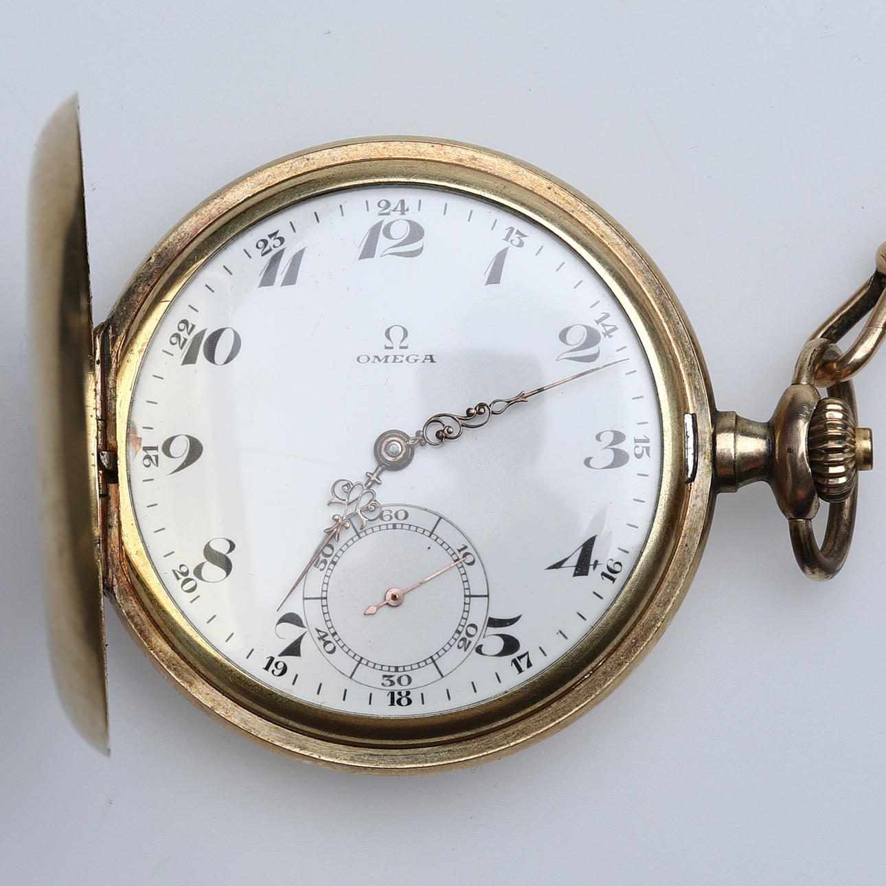 Omega savonette, diameter approx. 5.2 cm, gold double. Grandmother watch, silver, diameter approx. 3.5 cm. Spindle watch, stamped P.D, diameter approx. 4,5 cm. 2 pcs with chains. Condition Condition of use. Only Omega Worked at the time of cataloging. No functional warranty is provided. 8871
