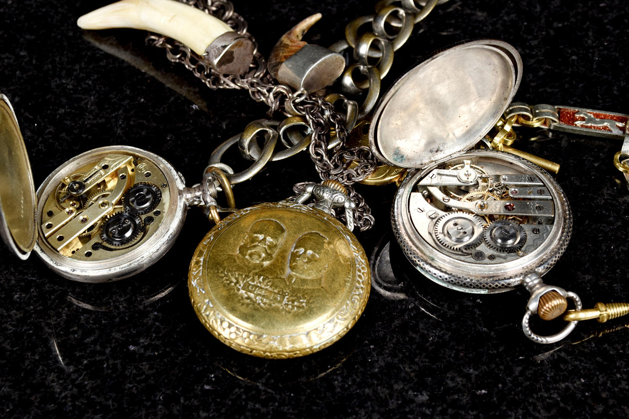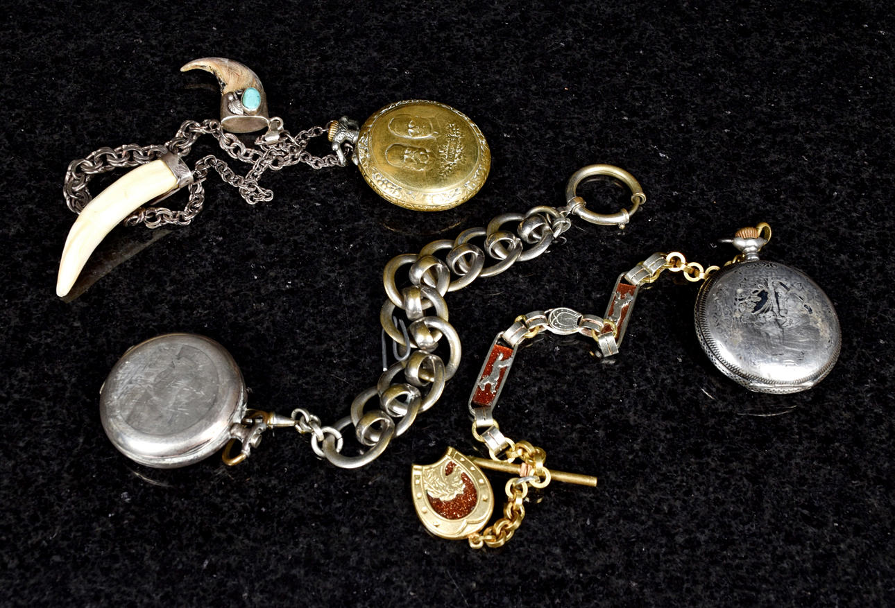POCKET WATCH WITH WATCH CHAINS 20TH CENTURY (3PCS).