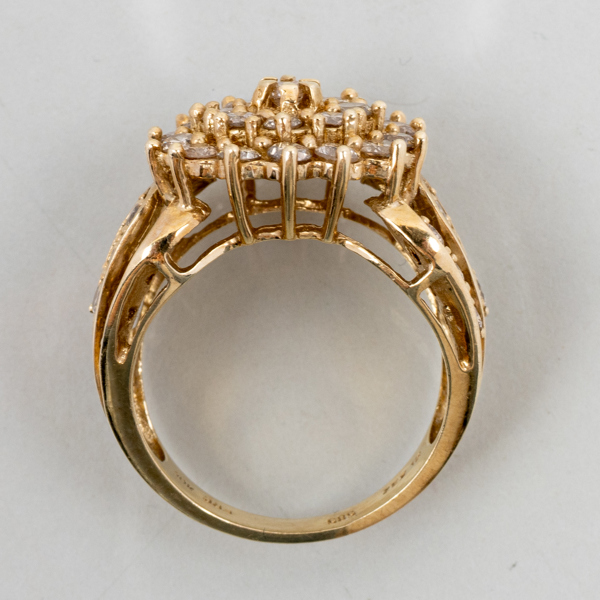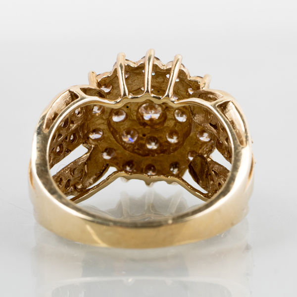 Diamonds quality approx. Cape/SI-I, raised setting, ring size approx. 17.25/54, motif diameter approx. 16 mm Condition report: Minor signs of wear
