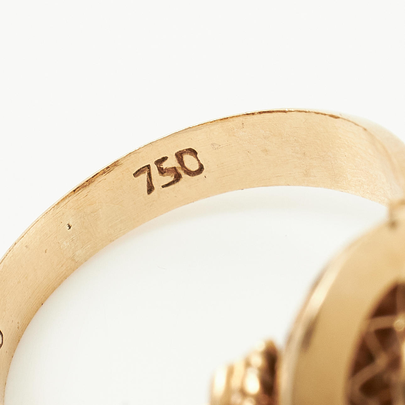 RING, 18k gold, cabochon-cut turquoise, openwork decor.