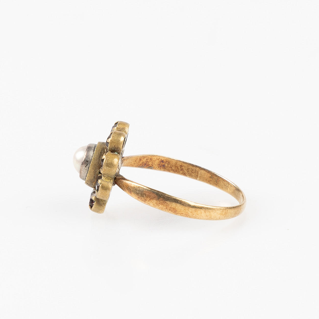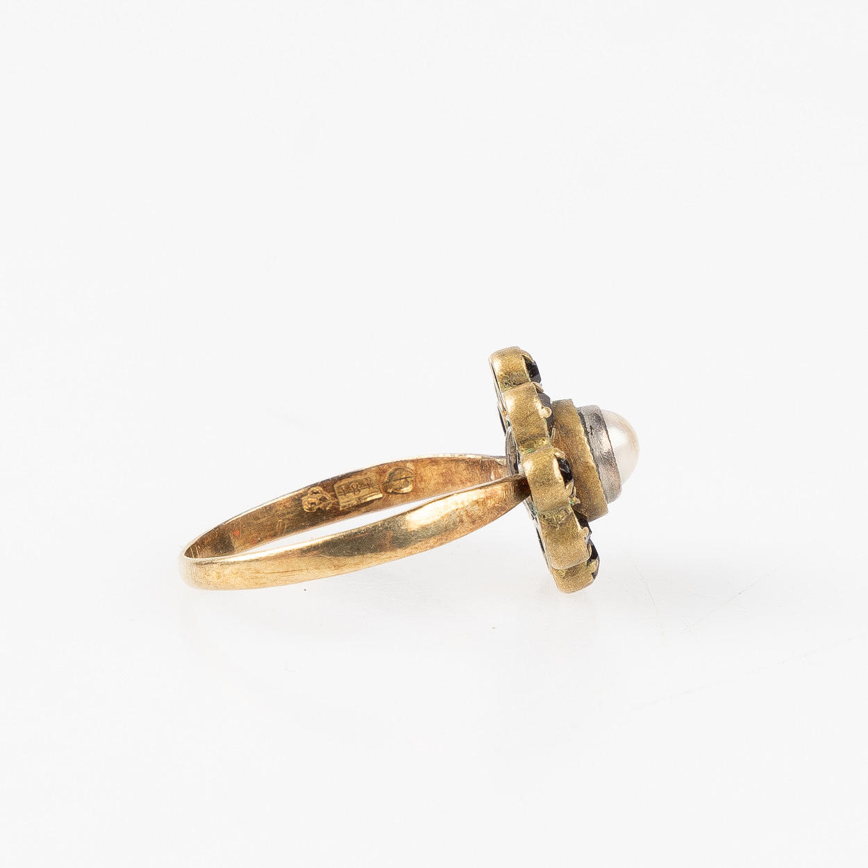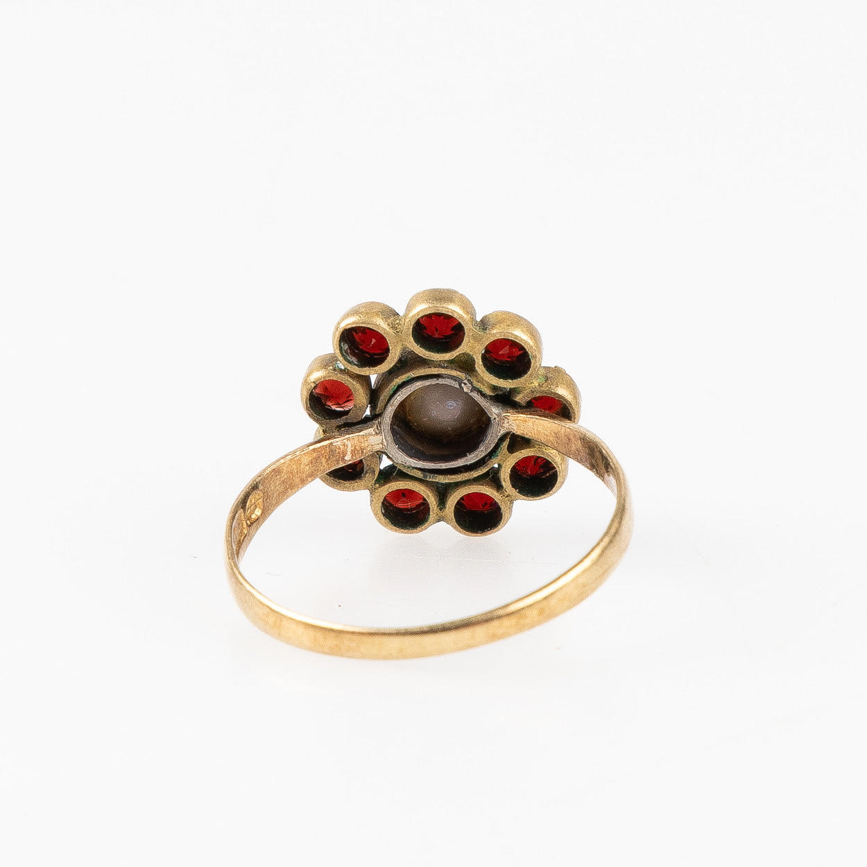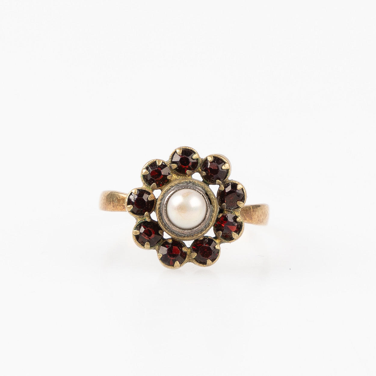 Inlaid with grenades and probably a river pearl. Ringstrl. about 17.5 mm. Weight about 2.1 grams. Condition Normal wear and tear. 79803