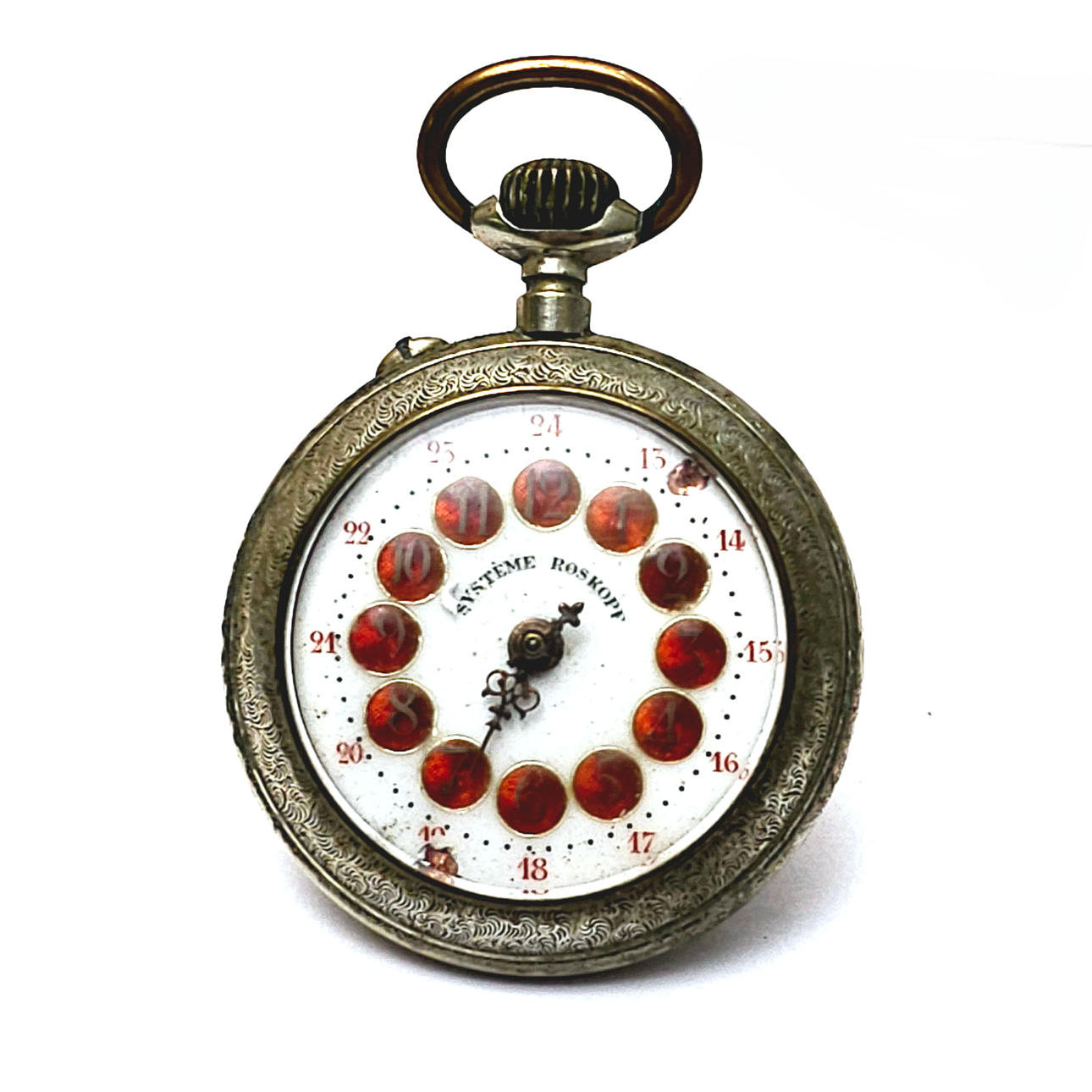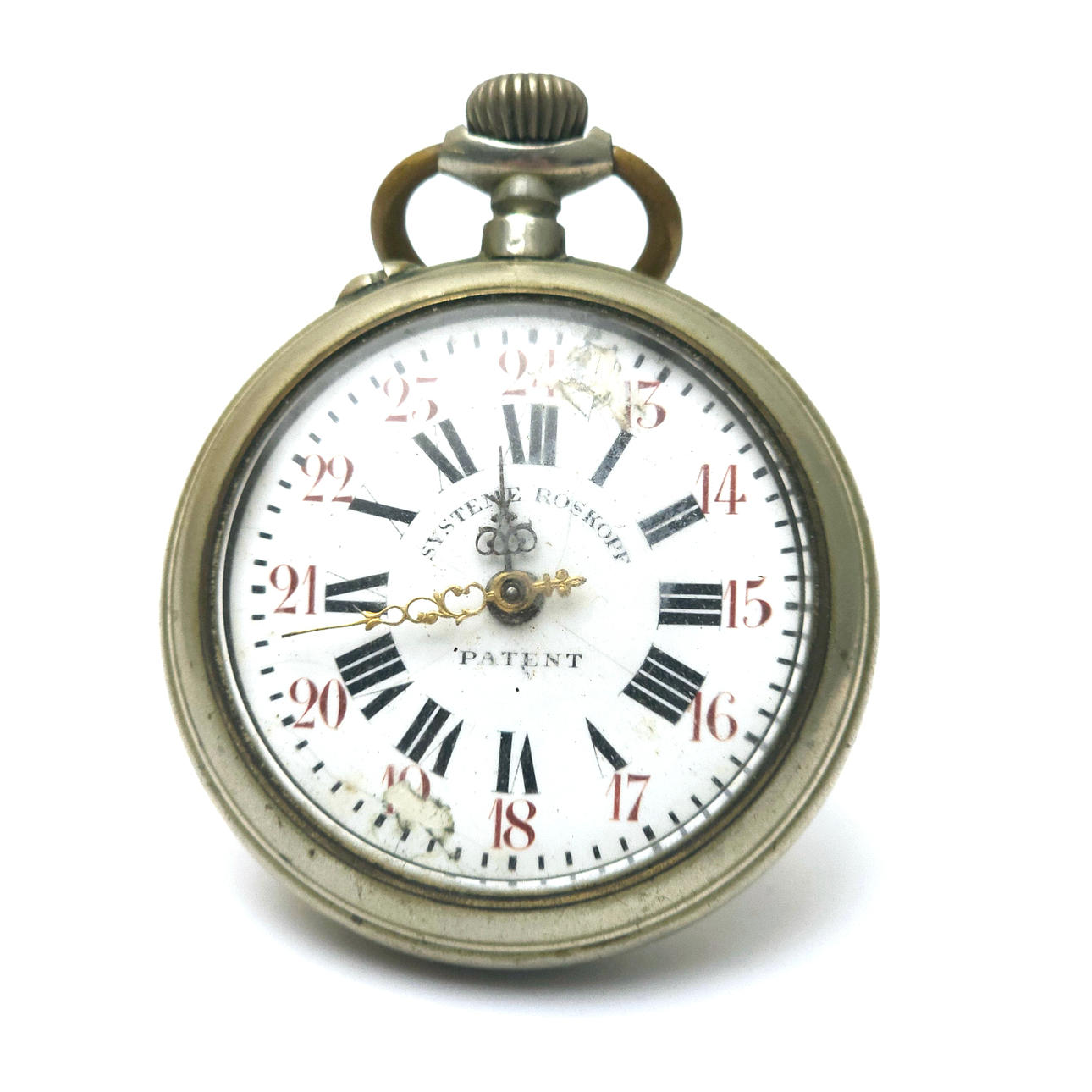 FOUR POCKET WATCHES FROM THE BEGINNING OF THE 20TH CENTURY. IN METAL. Different sizes, Roskopf system (probably copies of the real one). Condition They don't work. With faults. 21577