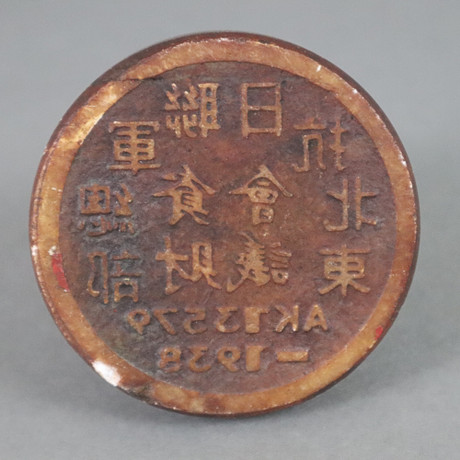 Round stamp surface with Chinese characters, Latin letters and Arabic numerals, dm. Plate approx. 7.9 cm, weight approx. 500 gram. Fitness report Underside with small shock lines 19411