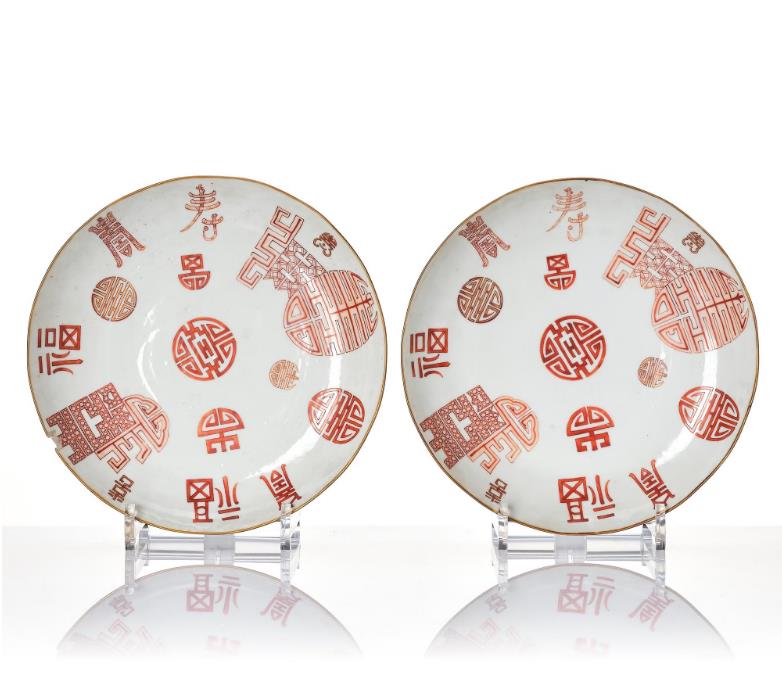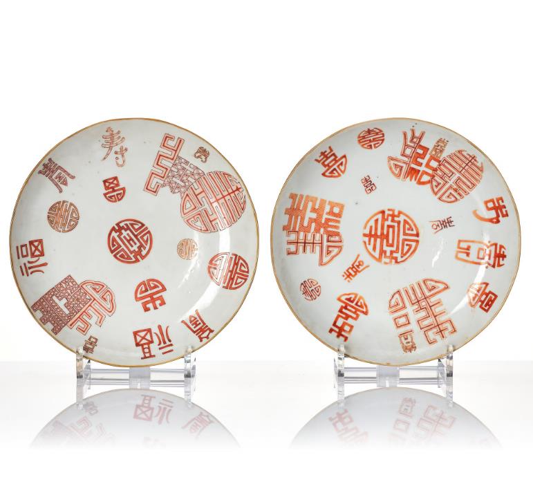 Saucer, four pieces, porcelain. Late Qing Dynasty.