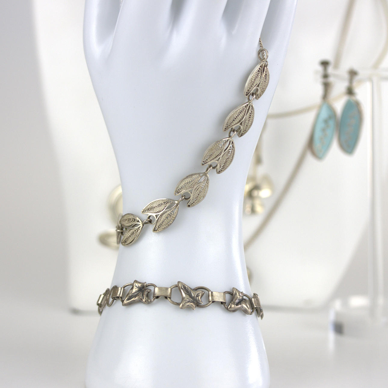 2 bracelets 925 1 pair of earrings with turquoise enamel 925 1 pendant, cross 925 1 rigid necklace with pendant 925 Weight 37,1 gr. 2 necklaces with pendants 835 1 pendant 835 1 pair of earrings 835 Weight 24,7 gr. Condition Condition of use. 36382