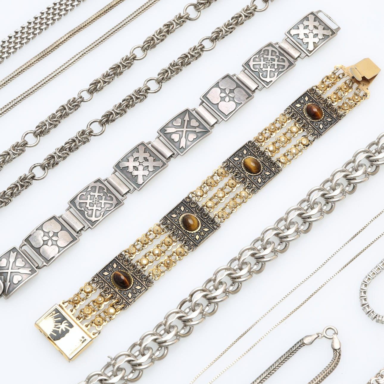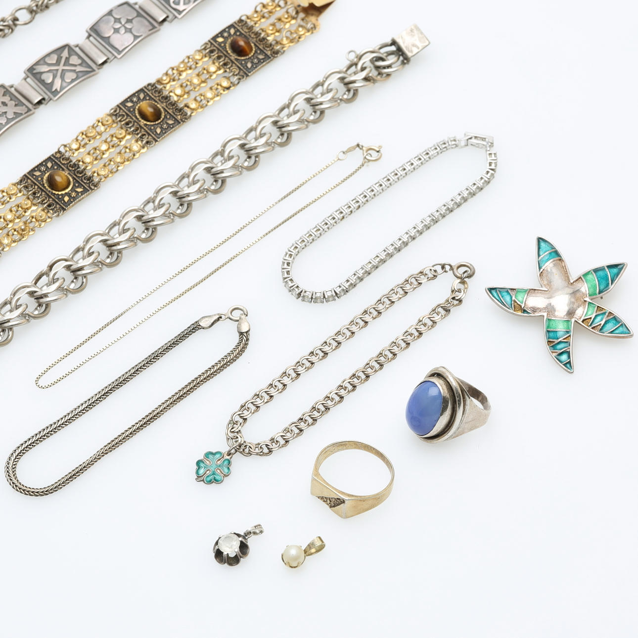 SILVER JEWELLERY, 15 pieces, silver and sterling silver.