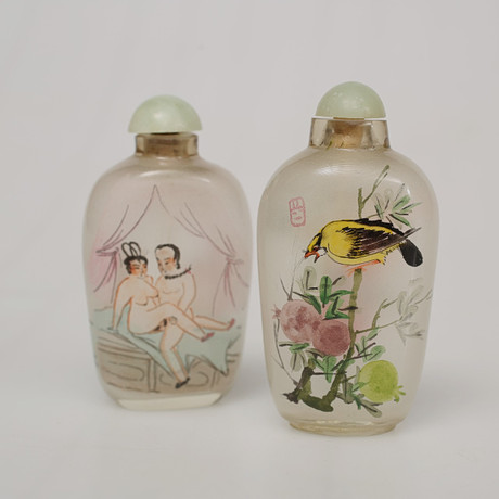 The one with an erotic motif. Height approx. 8 cm The one with a bird motif Height approx. 8 cm. Fitness report Insignificant wear and tear. 10407