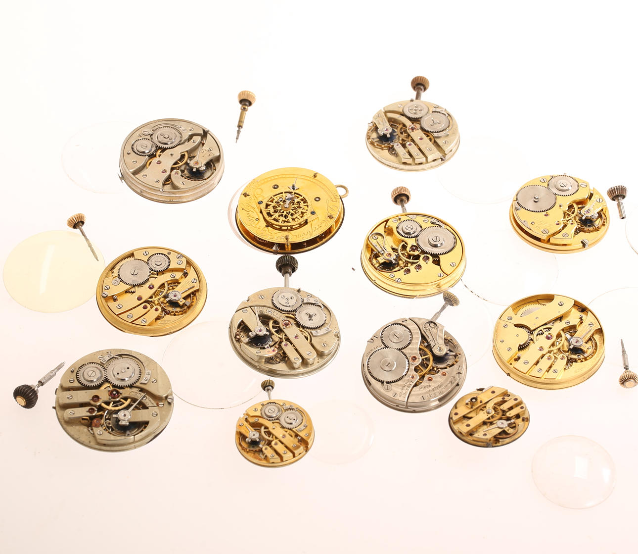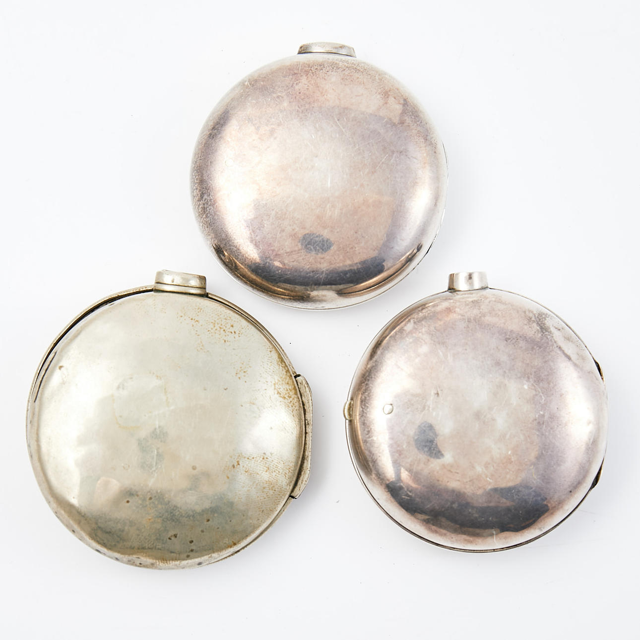 1.Spare parts for pocket watches.12 Condition Spare parts only.100354 2.POCKET WATCH CASE, 3 pcs., of which 2 in silver, stamped Bimingham 1833 and London 1867, 1 case and watch chain in metal. Inner diameter approx. 48,49 and 52 mm Weight silver cases approx. 84 g. Condition Normal wear and tear, dents, scratches.141781